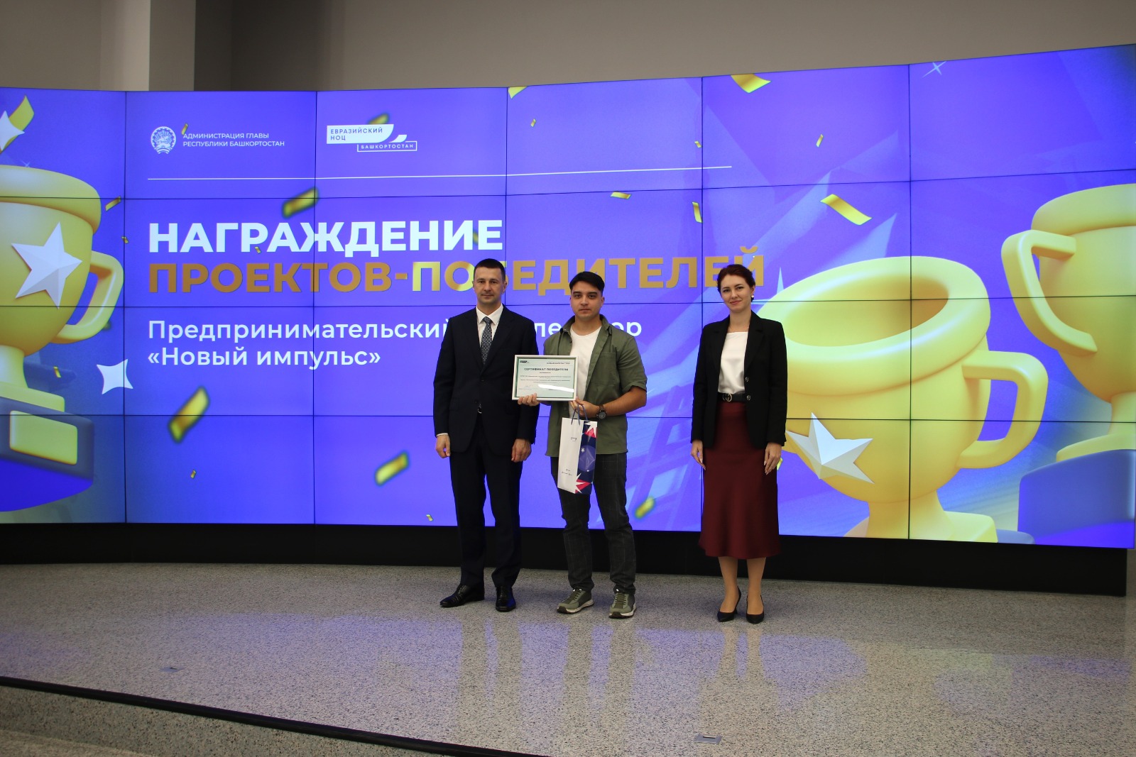В этом году более 100 молодых исследователей стали участниками акселератора «Новый импульс». Вместе с экспертами они шли от идеи к проекту. 34 команды выступили в финале, 9 из них успешно защитили свои проекты. Сертификаты и памятные подарки вручил руководитель администрации Главы Республики Башкортостан Максим Забелин.