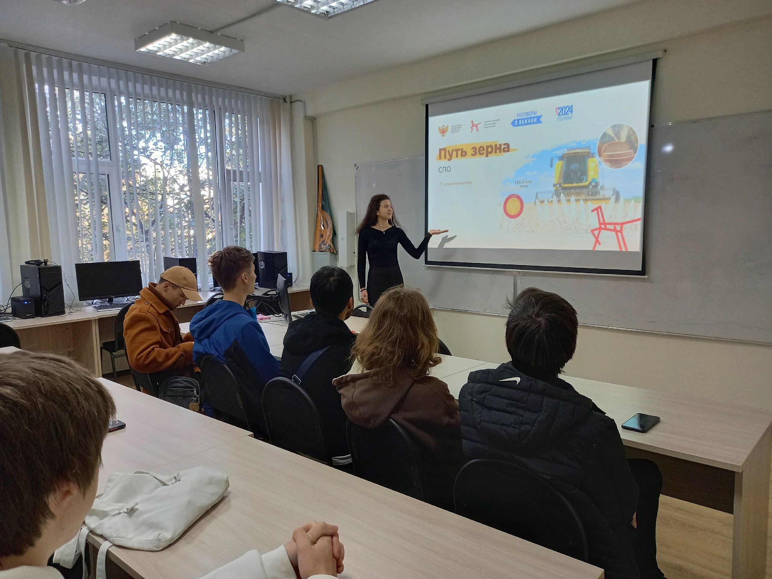 23 сентября прошли занятия в рамках проекта «Разговоры о важном». Тема: «Путь зерна». Ведущей стала студентка ПОФ_ИНФ-21-23 Гарейшина Светлана. Беседа была проведена со студентами группы ИСИТ- 11-24.
