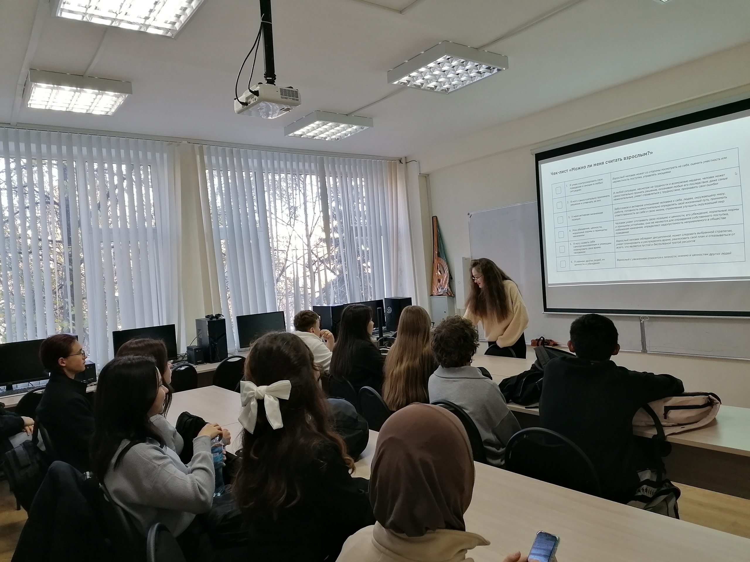 Вероника рассказала о возрастных этапах, правах и обязанностях взрослого человека. А также показала видеоролик о взрослении наших предков.