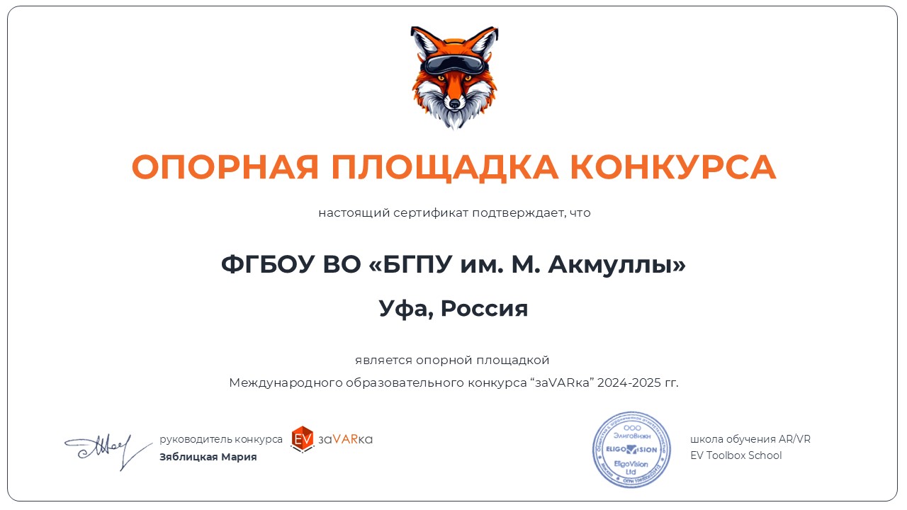 Акмуллинский университет получил статус Опорной площадки Международного образовательного конкурса «заVARка» в 2024-2025 учебном году.