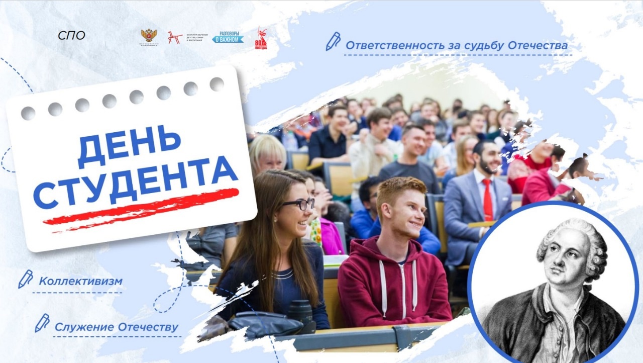 Ведущий рассказал об истории этого праздника, который связан с подписанием указа об основании Московского университета. Кроме того они обсудили, какие качества помогают студентам достигать успеха в учебе и жизни, а также поделились своими мечтами и планами на будущее.