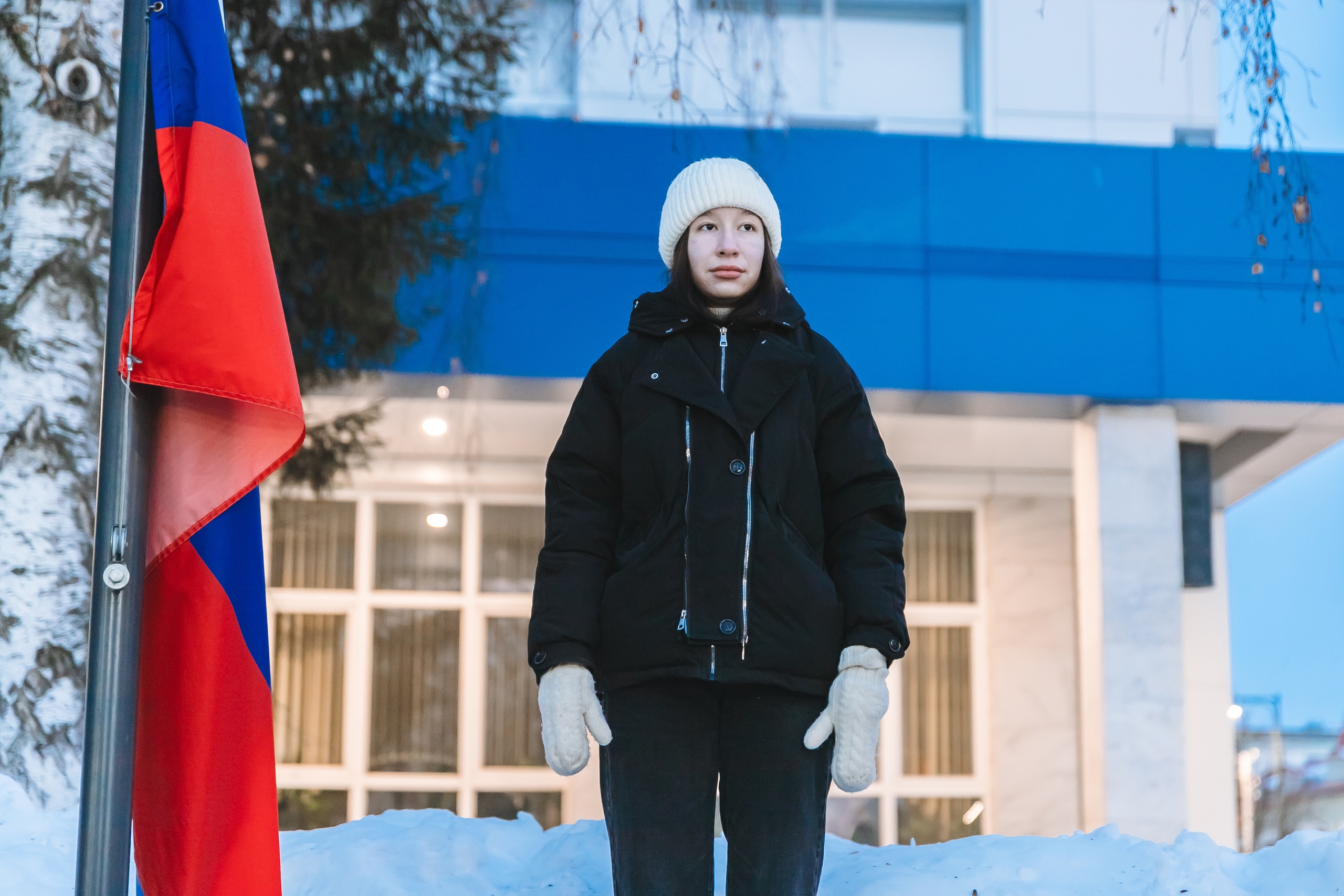 Почетное право поднять флаги на площади перед университетом получили студенты ИФОМК, имеющие особые достижения в общественной, спортивной и учебной деятельности: