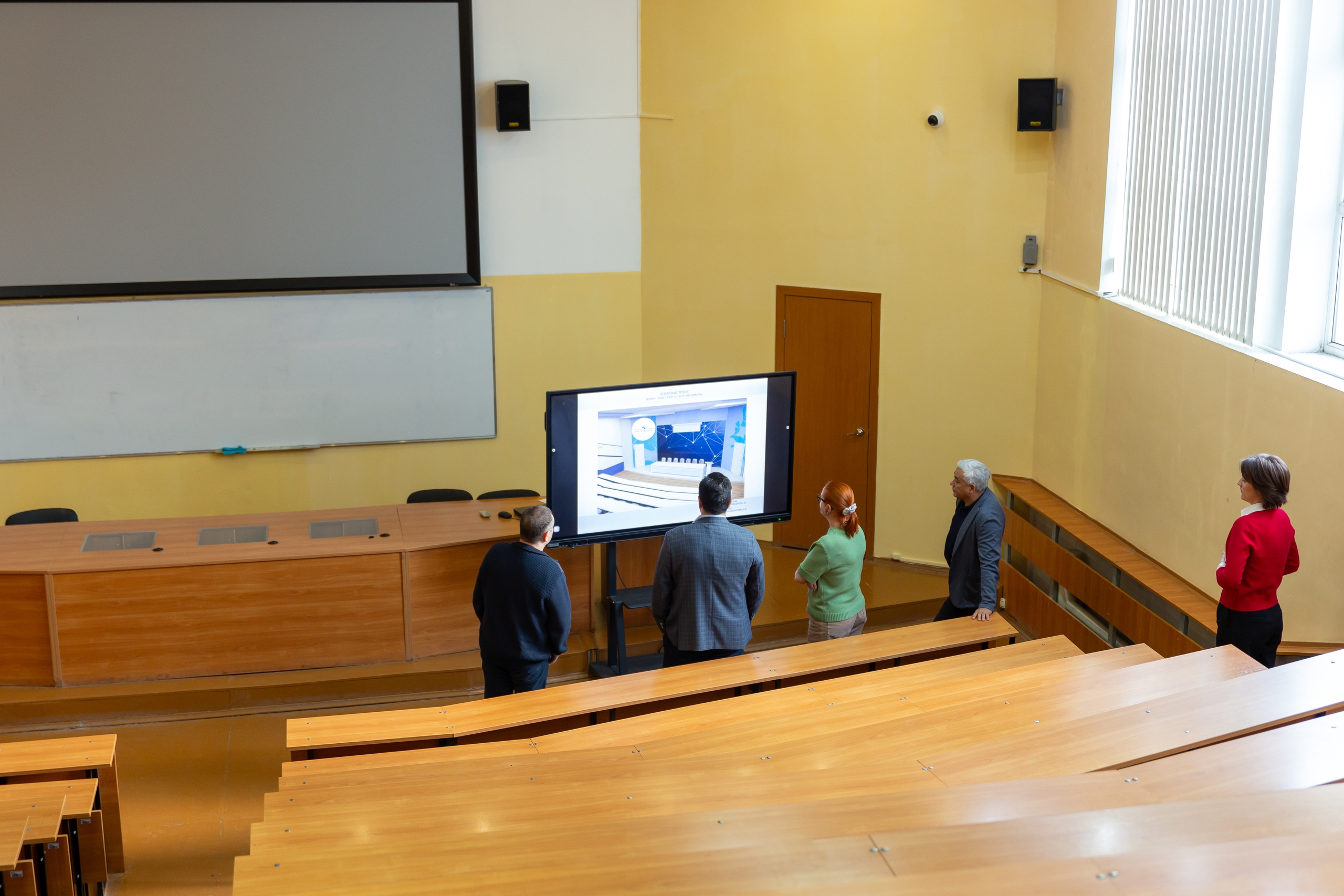 Сегодня мы познакомились с университетом и осмотрели класс, где планируем открыть аудиторию группы компаний «Просвещение», где будут представлены наши книги и продукты и которая станет местом встреч для студентов, родителей, абитуриентов, учителей».