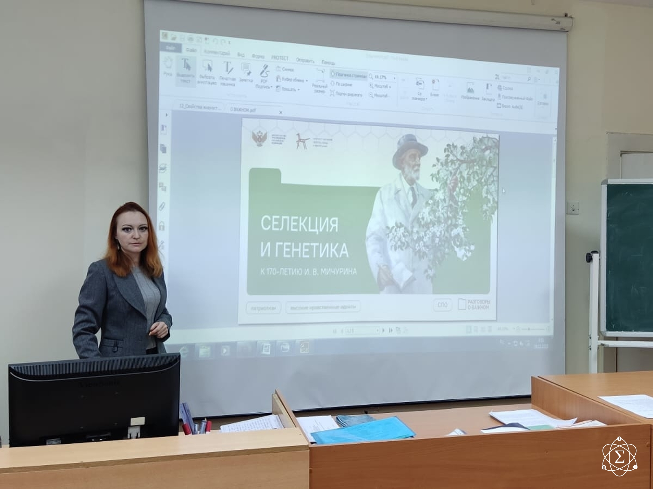 Тема сегодняшней дискуссии - роль генетики и селекции в развитии общества. Во время беседы студенты познакомились с деятельностью И. В. Мичурина, его научным вкладом и важностью ответственного природопользования.