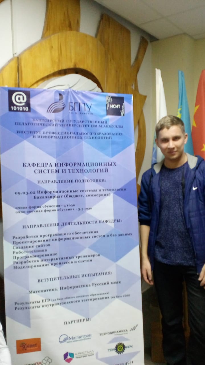 8 декабря 2018 года в здании второго корпуса БГПУ им.М.Акмуллы, состоялся День открытых дверей. Кафедра информационных систем и технологий, в составе Института профессионального образования и информационных технологий, приняла активное участие в этом знаменательном мероприятии.