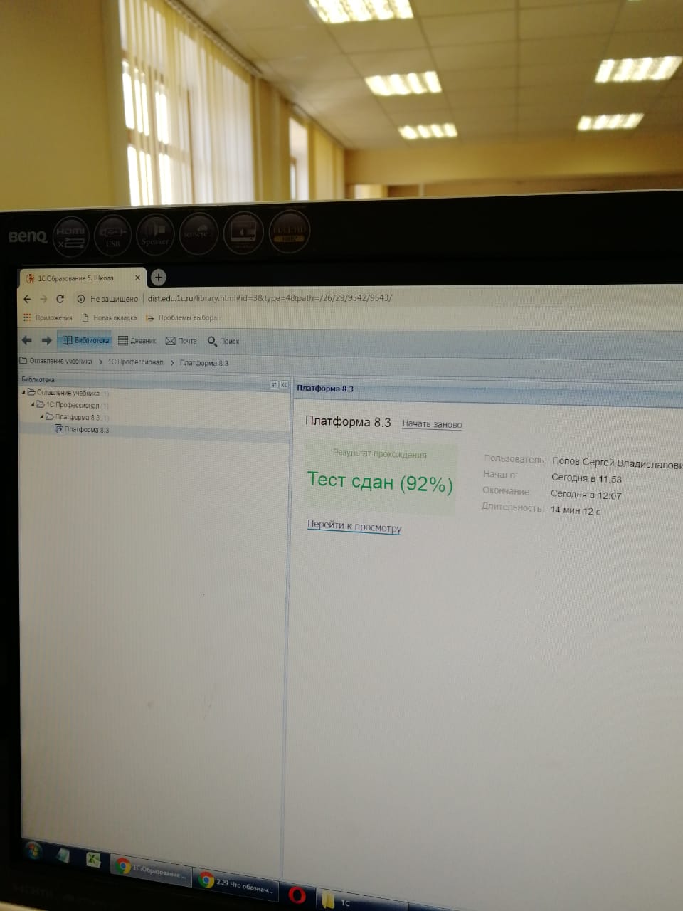 Студенты кафедры прикладная информатика Попов Сергей, Аслаева Фируза получили результаты тестирования на сертификат «1С:Профессионал», которое проводилось 15.11.2018 г. Из 14 вопросов они успешно справились с 13 и 12 соответственно. Тестирование проходило в рамках Всероссийского дня 1С:КАРЬЕРЫ-2018. Кроме Сергея и Фирузы, участие принимали и другие студенты кафедры, которые проявили свои знания в области программирования и выиграли ценные призы от 1С. Поздравляем с отличными результатами и желаем дальнейшего совершенствования в профессиональной деятельности!!!
