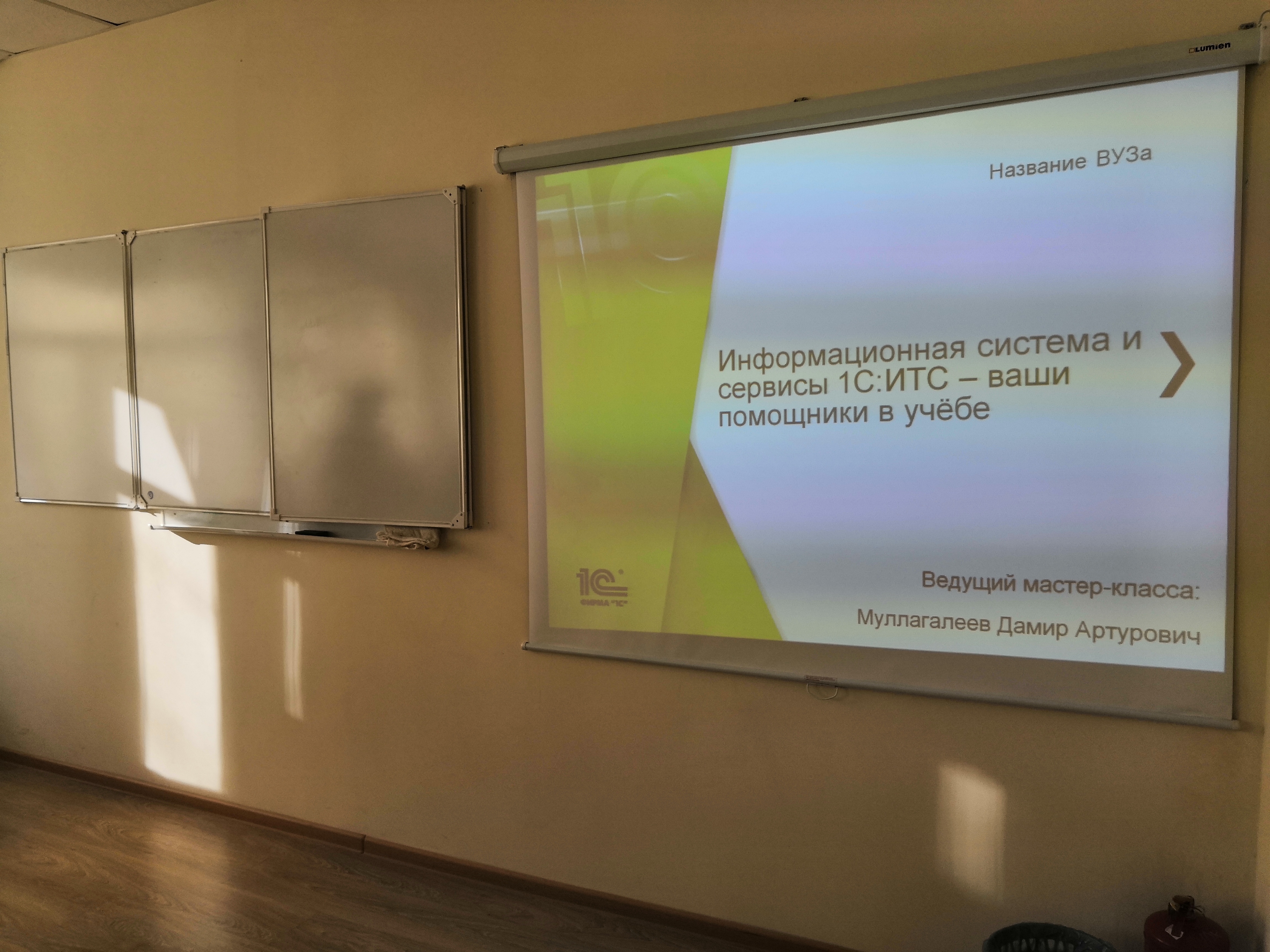 28 января в учебном корпусе №10 БГПУ им. М.Аккмуллы прошел мастер-класс «Информационные системы и сервисы 1C: ИТС – ваши помощники в учебе», организованный совместными усилиями куратора по работе с учебными заведениями 1С-Поволжье Лариным Михаилом Геннадьевичем, зав. кафедрой ИСИТ Старцевой Оксаной Геннадиевной и преподавателем Хакимовой Е.А.. Перед студентами Института профессионального образования и информационных технологий выступал специалист из компании ГК «Софт-сервис» Муллагалеев Дамир Артурович.