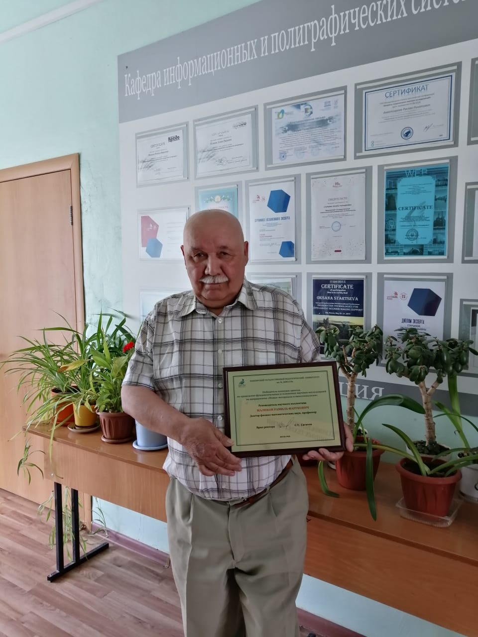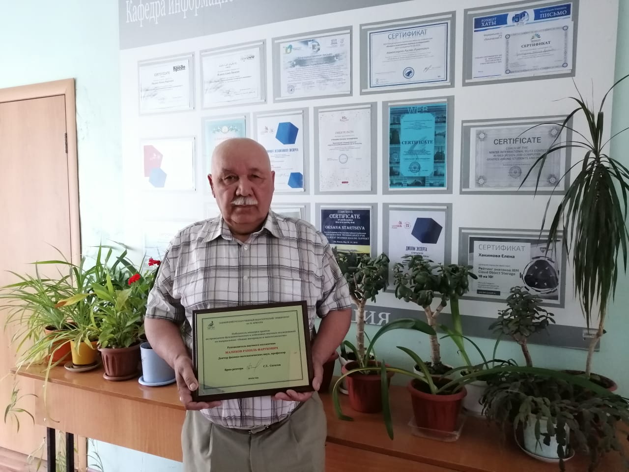 В мае 2019 года прошел очный этап конкурса грантов на проведение фундаментальных и поисковых научных исследований. В направлении "Новые материалы и нанотехнологии" победил научный коллектив под руководством доктора физико-математических наук профессора кафедры Информационных систем и технологии Института ПОиИТ Маликова Рамиля Фаруковича. в состав коллектива так же вошли Байрамдурдыев Д.Я., магистрант направления 09.03.03 Прикладная информатика и Нгеко Муандзиби Д.Р. студент 1 курса направления 09.03.02 ИСИТ. Актуальность и научная новизна проекта заключается в восполнении пробела в области теории оптических свойств искусственных двумерных суперкристаллов полупроводниковых квантовых точек и органических полимеров, которые до настоящего времени не исследованы. Кафедра ИСИТ искренне поздравляет Рамиля Фаруковича и весь коллектив и желает успешной реализации исследования и творческих открытий.