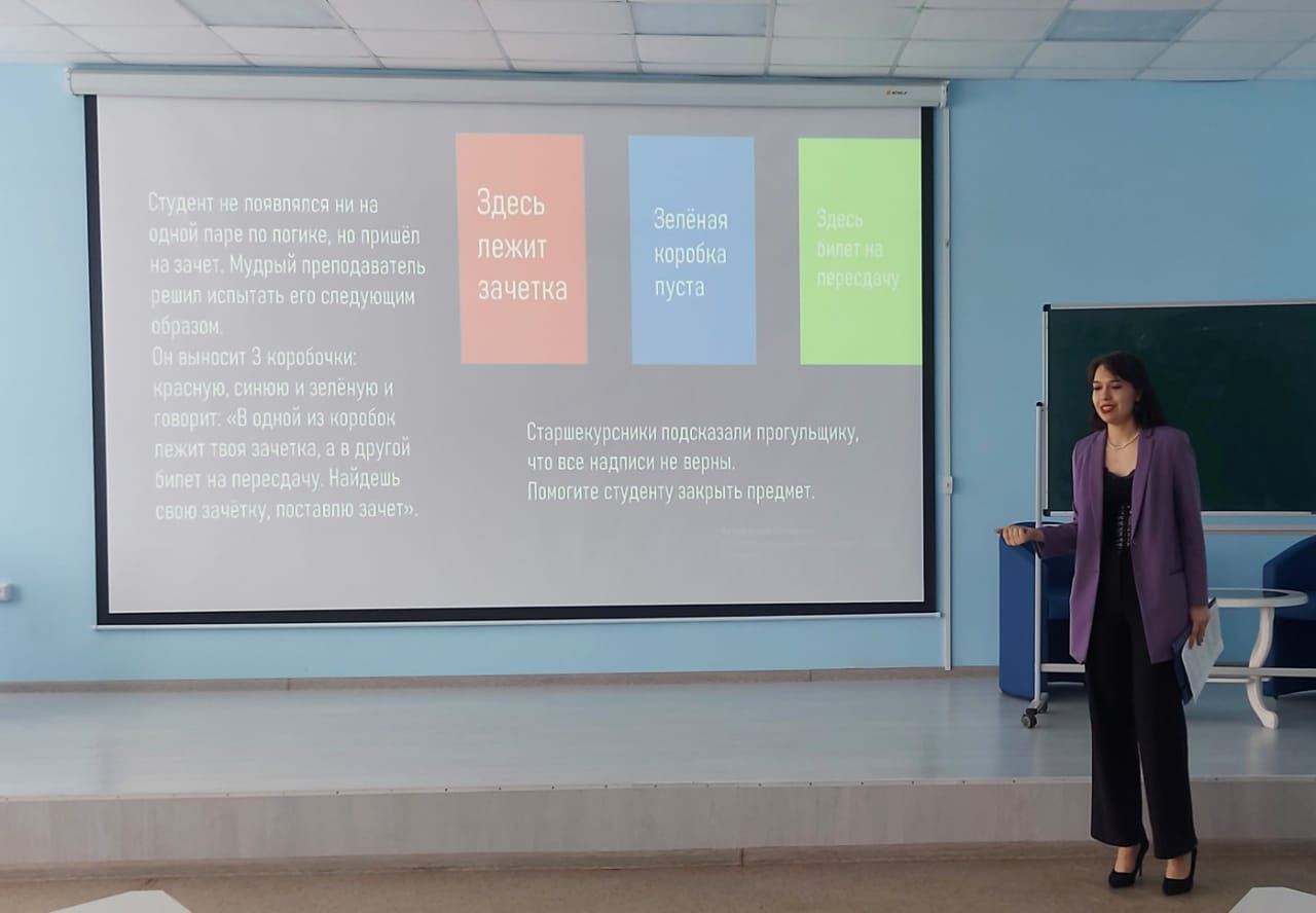 Студентка института ИФМЦН, Лена Урванцева (под руководством зав. кафедрой математики и статистики Кудашевой Е.Г.), совместно со студентами ИИПСГО БГПУ им. М.Акмуллы  приняла участие в Педагогическом марафоне для студентов 4 курсов. Её роль заключалась в проведении занятия на тему «Логика в задачах». На нём она показала несколько видов  задач математической логики и поделилась способами их решений Лена подробно рассказала, как решать самые разные логические задачи с помощью: