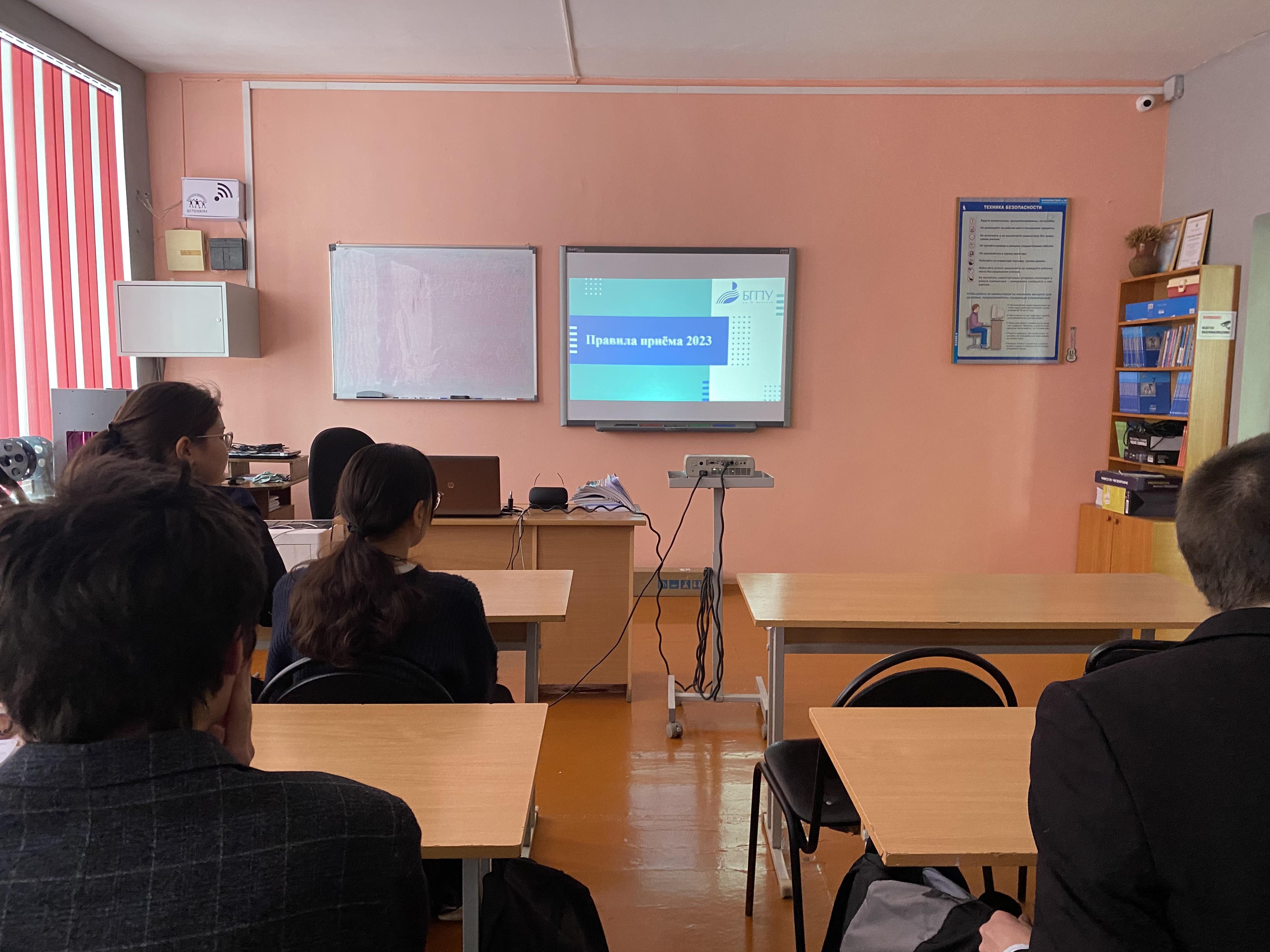 Студенты 4 курса института физики математики цифровых и нанотехнологий Башкирского государственного педагогического университета им. М. Акмуллы Кислухина Екатерина и Бикбулатова Алсу  отправились в профориентационную экспедицию в Иглинский район. На базе МБОУ СОШ №2 с. Иглино прошла встреча с учениками 10-11 классов. Студентки рассказали о нашем вузе и правилах приема документов для поступления,  а также рассказали о колледже БГПУ им. М. Акмуллы. Подробно девушки сделали доклад о специальностях и направлениях обучения в нашем институте. Встреча была полезной и интересной как для  учеников, так и для студентов.