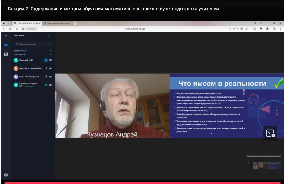 съезд учителей и преподавателей математики. На Съезде проходит широкое обсуждение состояния и перспектив развития всех ступеней российского образования в области математики, его целей и содержания, актуальных вопросов