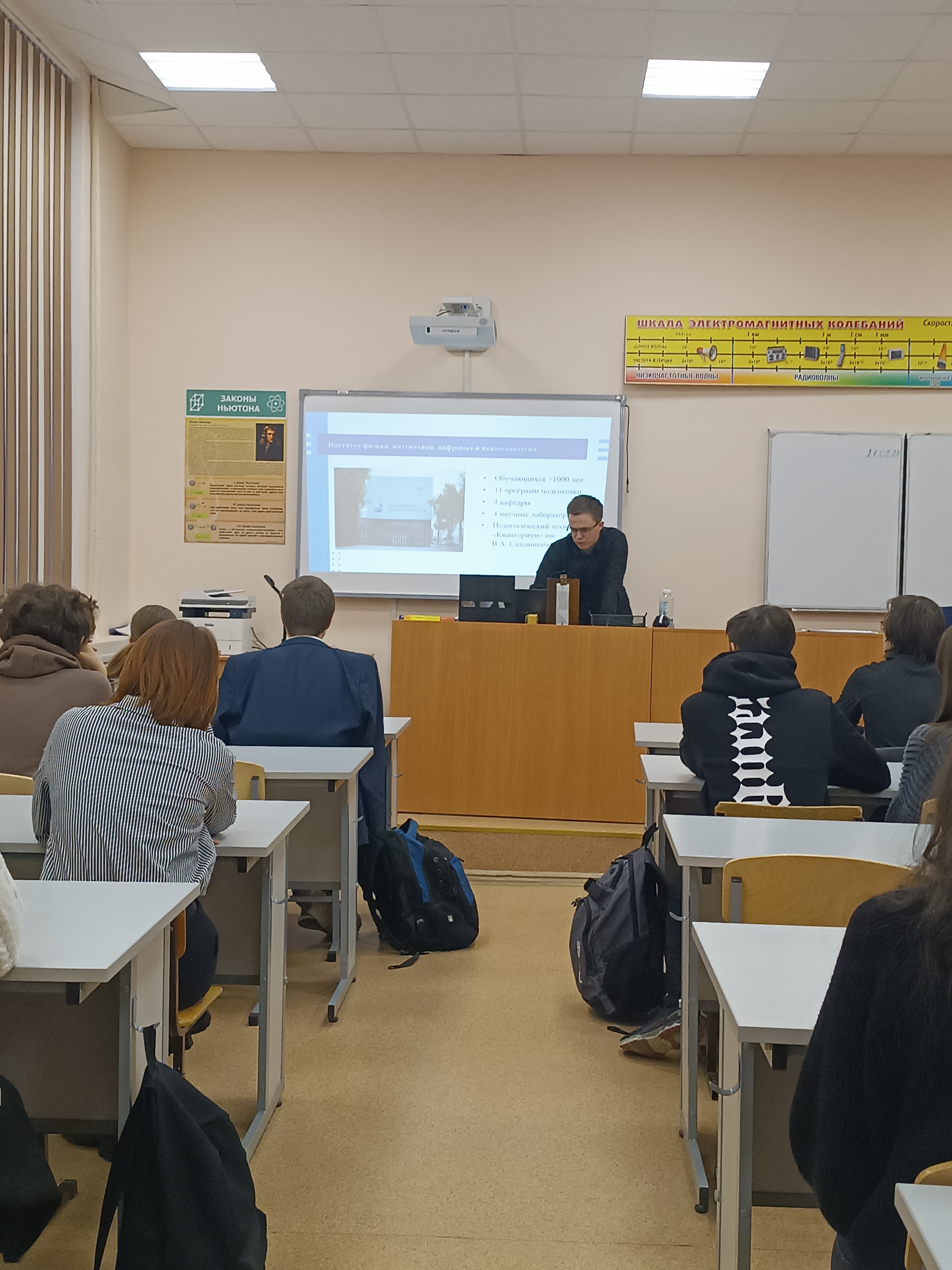направления подготовки существуют, о правилах и условиях приема, чем занимаются студенты вне учебной деятельности). А так же познакомили с перечнем вступительных испытаний. Школьники узнали об интересной