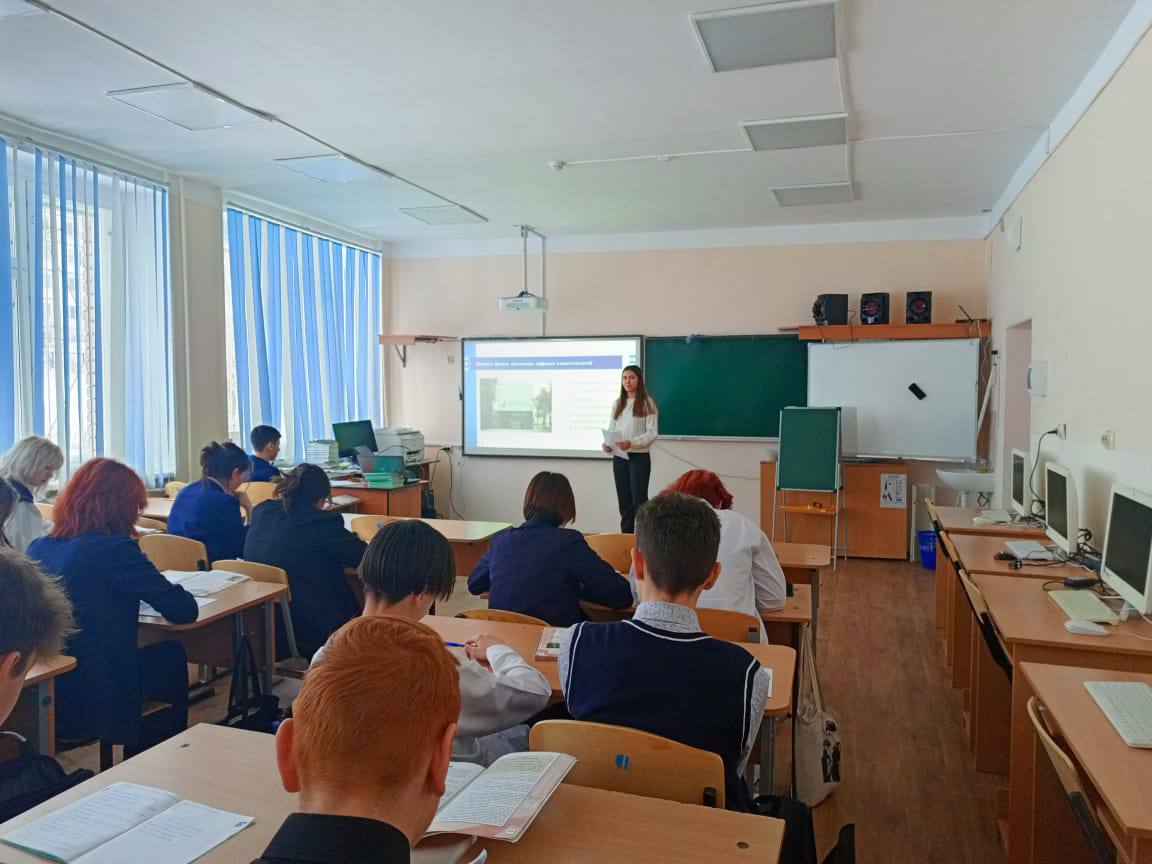 Студентка IV курса Ильясова Алина Института физики, математики, цифровых и нанотехнологий, направления подготовки Педагогическое образование (с двумя профилями подготовки), профиль математики и информатики, провела профориентационное мероприятие для обущающихся 9 классов в СОШ с.Алкино-2.Мероприятие прошло в целях знакомства школьников со специальностями и профессиями, которые можно получить при поступлении в колледж или университет БГПУ им.Акмуллы. Так же мероприятие было направлено на расширение знаний об истории открытия Акмуллинского университета, о различных факультетах и корпусах, о новых технологиях обучения, в новых современных лабораториях в которых проводят занятия.В процессе проведения такого мероприятий школьники узнали много новой информации о нашем университете, особенно об особенностях поступления, о активной и творческой студенческой жизни.