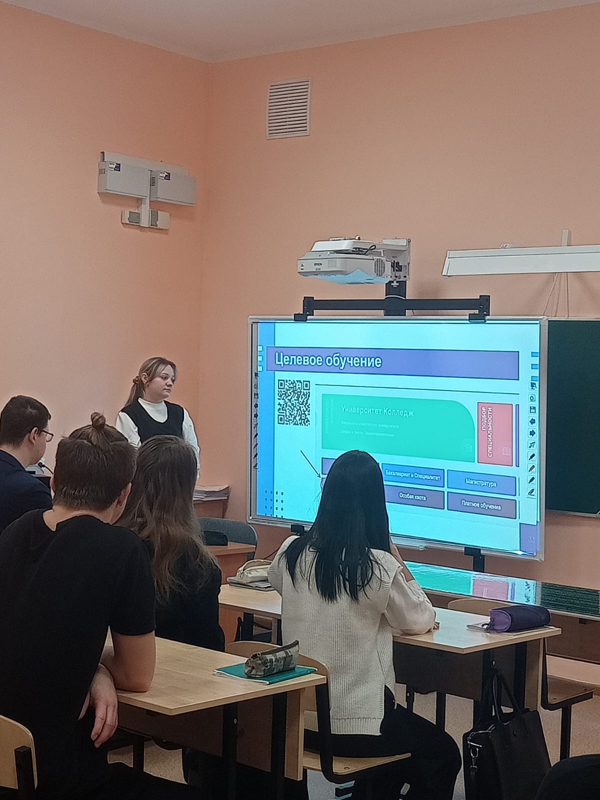 9 февраля 2024 года Свистун Ангелина, студентка ПОМ-ИНФ 41-20, провела профориентационное мероприятие «Правила приёма 2024» с 10 классом в МБОУ СОШ № 5 с. Иглино .Целью мероприятия было познакомить старшеклассников с нашим вузом и с институтом ИФМЦН, рассказать о правилах приёма в Акмуллинский университет в 2024 году. Учащиеся были ознакомлены с востребованными профессиями, узнали количество мест в каждом направлении, сроках обучения, узнали о важных особенностях инженерного и педагогического направлениях обучения. Также были ознакомлены с сайтом нашего университета, и с необходимыми документами на сайте БГПУ им. М. Акмуллы. Общение прошло в тёплой и дружеской атмосфере. Ребята активно задавали вопросы, а также по окончании мероприятия подходили для уточнения и получения дополнительной информации.