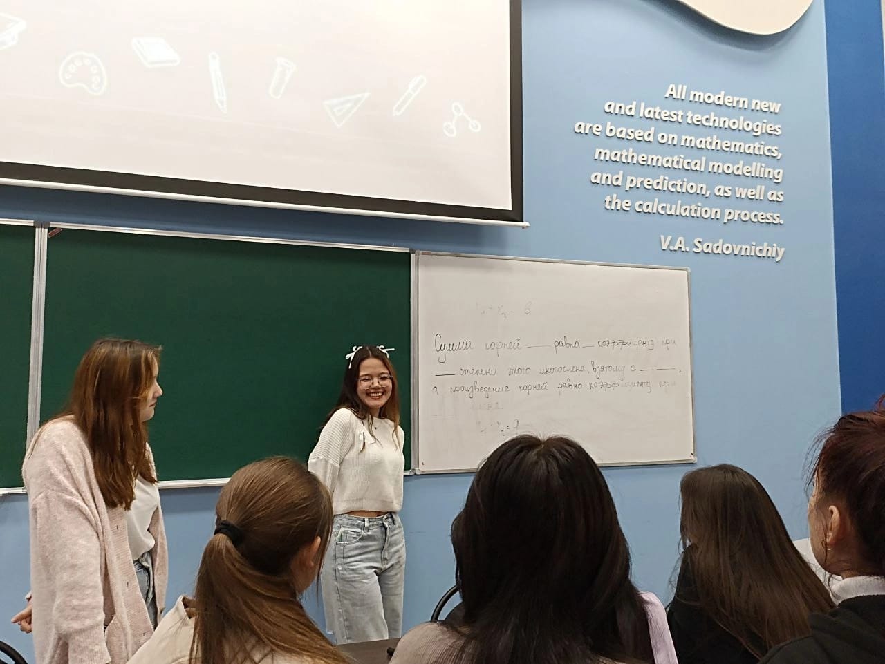 10 октября  в рамках предмета методы исследовательской/ проектной деятельности студенты второго курса педагогического направления Вероника Кондратьева, Катя Сайранова, Энже Файзуллина и Элина Хусаинова продемонстрировали учебный проект - "Бедная" теорема Виета - для первокурсников групп ПОМ_ФИ-11-24 и ПОМ_ФИ-12-24. Первокурсникам рассказали теорию, провели математическую квест-игру и передали зашифрованные послания от старшекурсников ИФМЦН, которые  пригодятся ребятам в будущем!