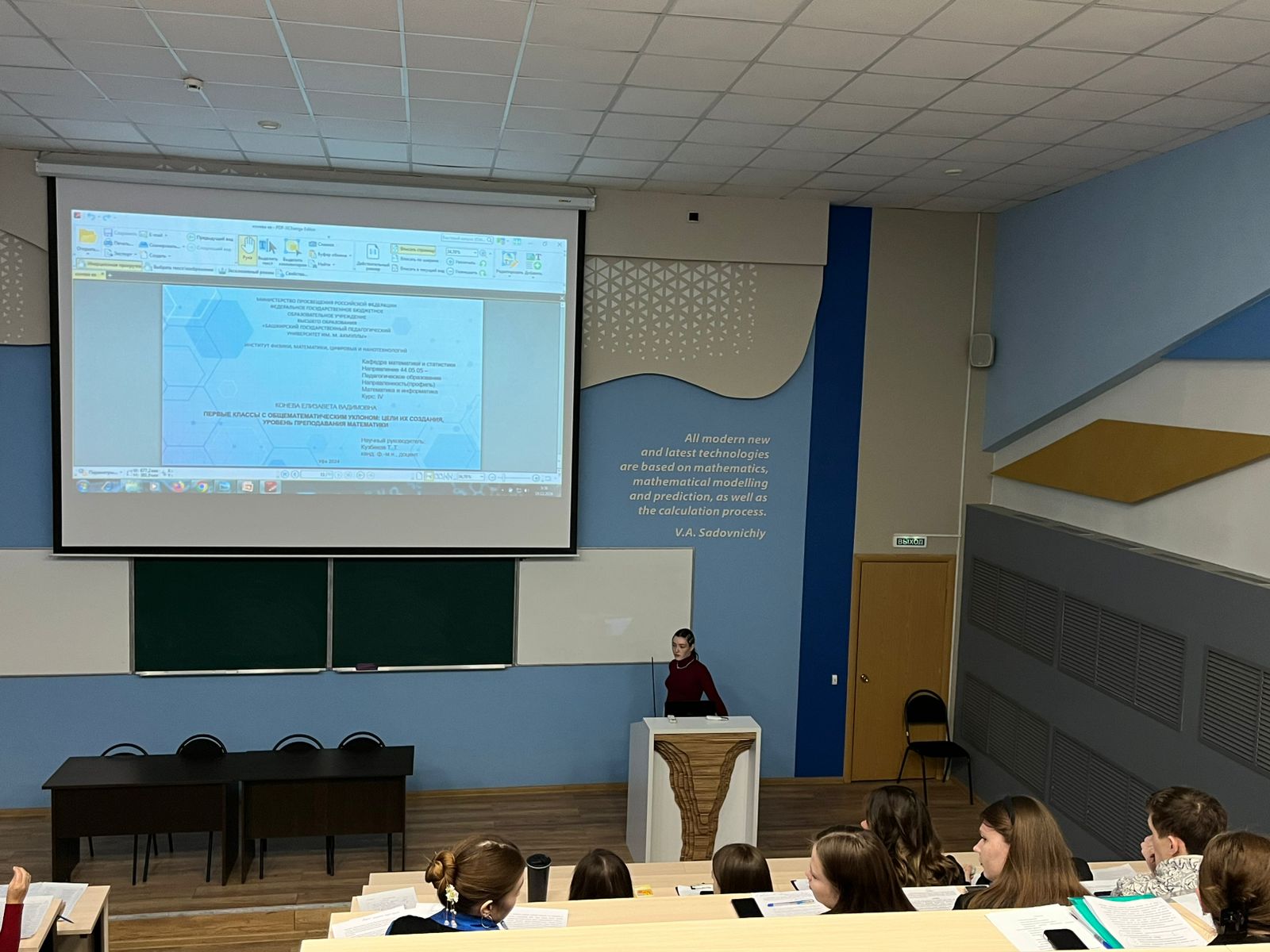 19 декабря на кафедре математики и статистики под руководством доцента Карунас Е.В. прошла студенческая научно-практическая конференция " Теория и практика обучения, развития, воспитания в предметной области " МАТЕМАТИКА", молодежь и современные исследования". Студенты четвертого курса педагогического направления выступили с докладами на  различные темы по проблемам обучения математики в современной школе. Конференция прошла в рамках цикла мероприятий, посвященных дню математика.