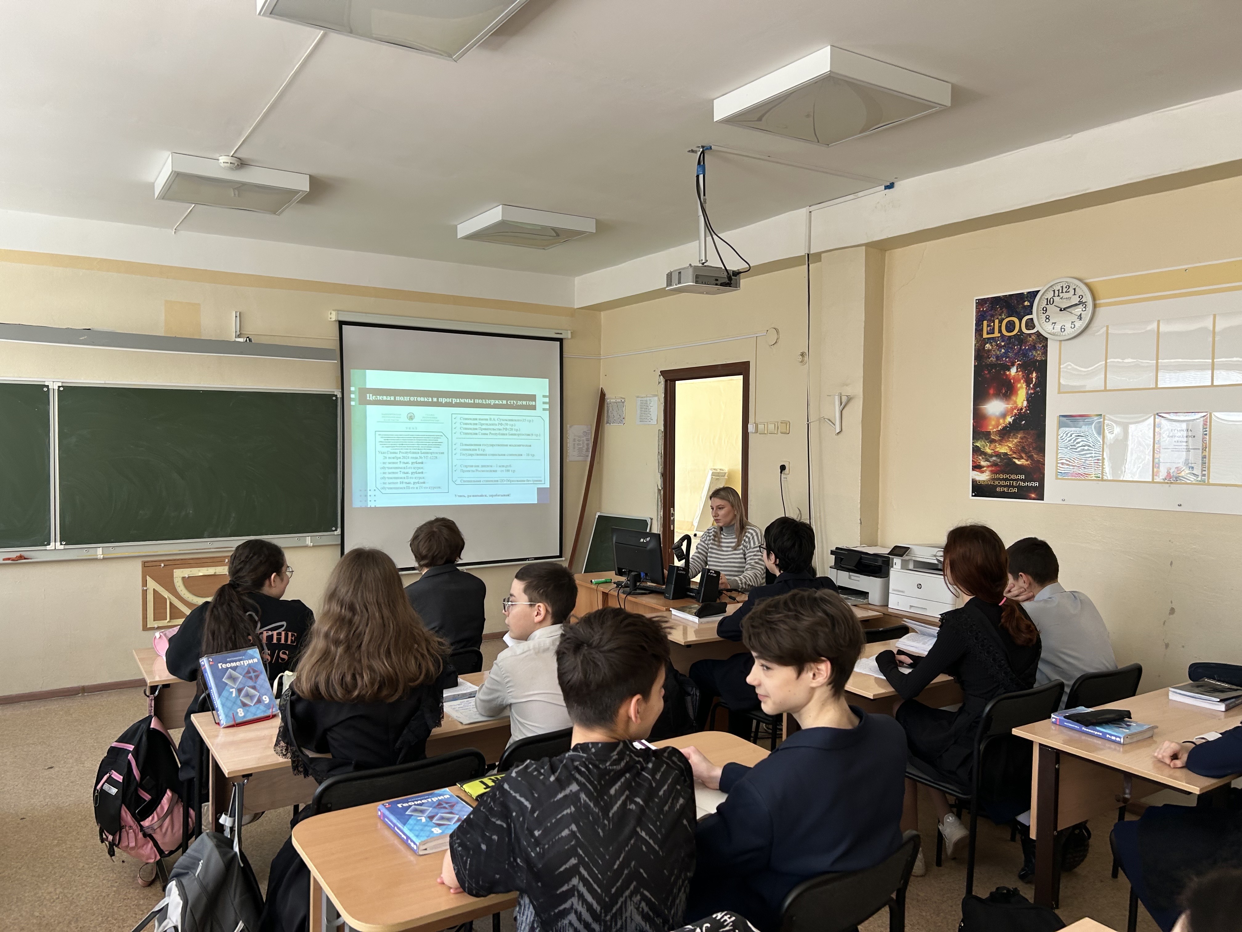 26 марта в Школе №18 г. Уфы состоялась увлекательная и полезная встреча, посвященная выбору будущей профессии. Абросимова Анна, студентка группы ПОМ_ИНФ 41-21 поделилась личным опытом поступления и обучения в ВУЗе,