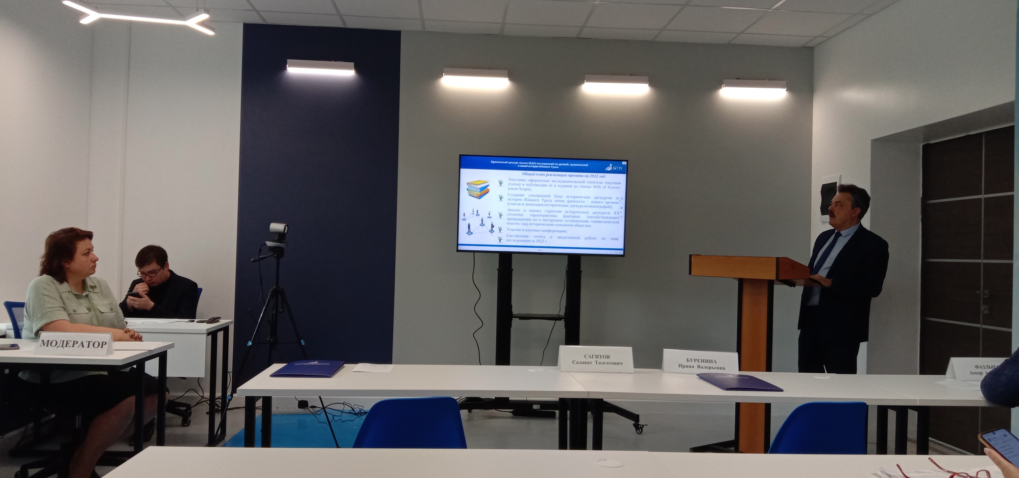 29 июня 2022 года года Заведующий лаборатории патриотического воспитания молодежи и истории казачества Кортунов Алексей Иванович принял участие в научной сессии "Современные исследования и инновации", которая прошла на базе Евразийского научно-образовательного центра института исторического, правового и социально-гуманитарного образования БГПУ им.М.Акмуллы. Доклад был посвящен промежуточным результатам выполнения гранта Российского научного фонда