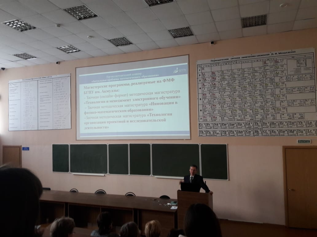 1 ноября на физико-математическом факультете БГПУ им. М. Акмуллы состоялось первое заседание научно-методического семинара «Актуальные вопросы математического образования в условиях реализации ФГОС» (научный руководитель - д.п.н., проф. А.В. Дорофеев). Современных проблемы обучения математике в контексте введения национальной системы учительского роста затронул в своем выступлении профессор Андрей Викторович Дорофеев.