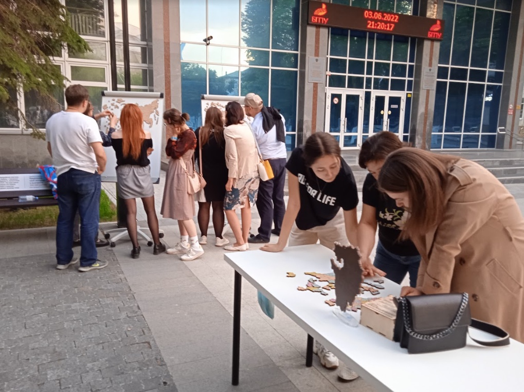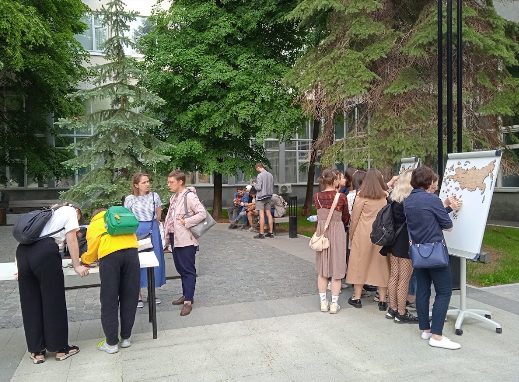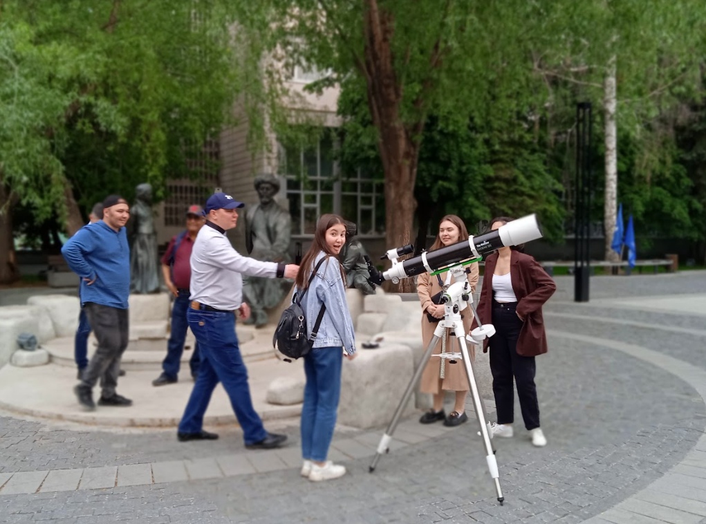 3 июня в Уфе перед вторым учебным корпусом Акмуллинского университета с 20:00 до 22:00 часов была организована одна из тематических площадок. Участниками стали более 200 человек. Кафедра экологии, географии и природопользования естественно-географического факультета совместно с кафедрой физики и нанотехнологий Института физики, математики, цифровых и нанотехнологий БГПУ им. М. Акмуллы подготовили для уфимцев и гостей города различные викторины, игры, квесты и конкурсы. Гости «самой географической ночи года» смогли увидеть лунные кратеры через объектив телескопа с 90-кратным увеличением, а также собрать географические пазлы - спилс-карты России и Башкортостана. Кроме этого, участники акции написали письма полярникам в Арктику. Очень скоро организаторы мероприятия передадут их через Музей Полярников имени В.И. Альбанова руководителю поисковых экспедиций Евгению Ферштеру. Он отвезет все послания на полярную станцию. Авторы писем получат ответы с самого северного почтового отделения России.