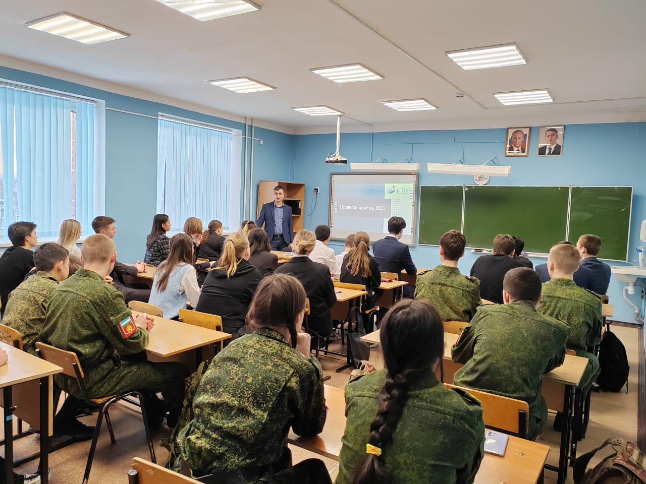 03 февраля 2023 года в в лицее с.Булгаково прошли профориентационные мероприятия института физики, математики, цифровых и нанотехнологий. В рамках мероприятий перед учащимися 10-11 классов лицея выступил директор о направлениях подготовки реализуемых в Институте и правилах поступления. С руководством школы обсуждалась реализация дорожной карты работы психолого-педагогических классов.