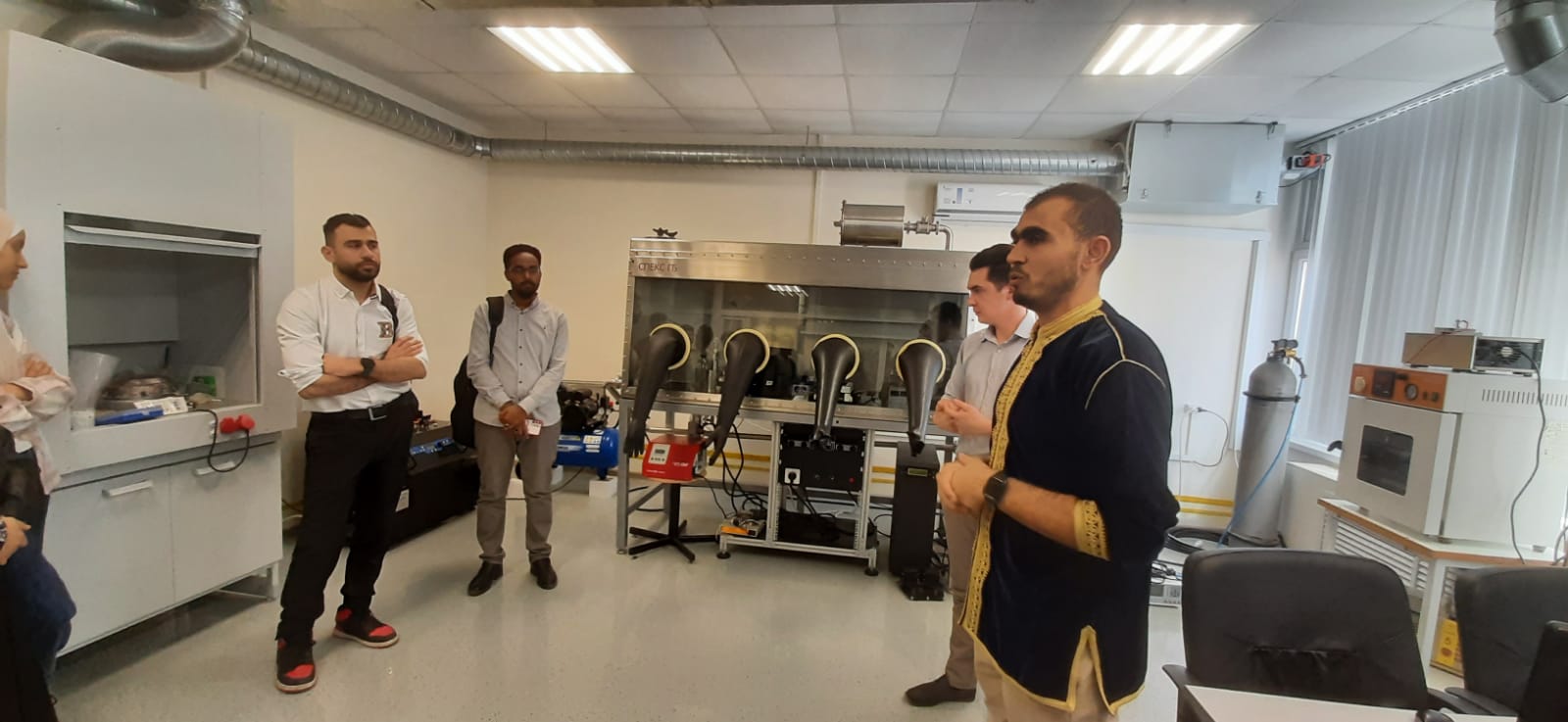 Для гостей была проведена экскурсия по мастерским, учебным и научным лабораториям кафедры физики и нанотехнологий. Гости ознакомились с оснащением лаборатории дополненной реальности, научно-исследовательским и технологическим оборудованием для изучения органических полупроводниковых материалов в широком диапазоне температур 6К-300К, а также учебными лабораториями инженерной и компьютерной графики, 3D-проектирования и печати, атомно-силовой микроскопии, рассмотрели станки с УПУ, робототехнику, беспилотные летательные аппараты и многое другое.