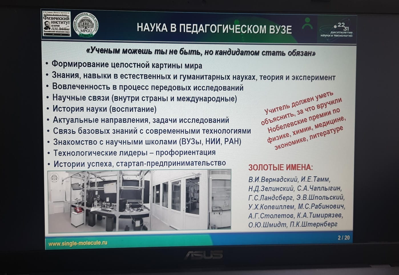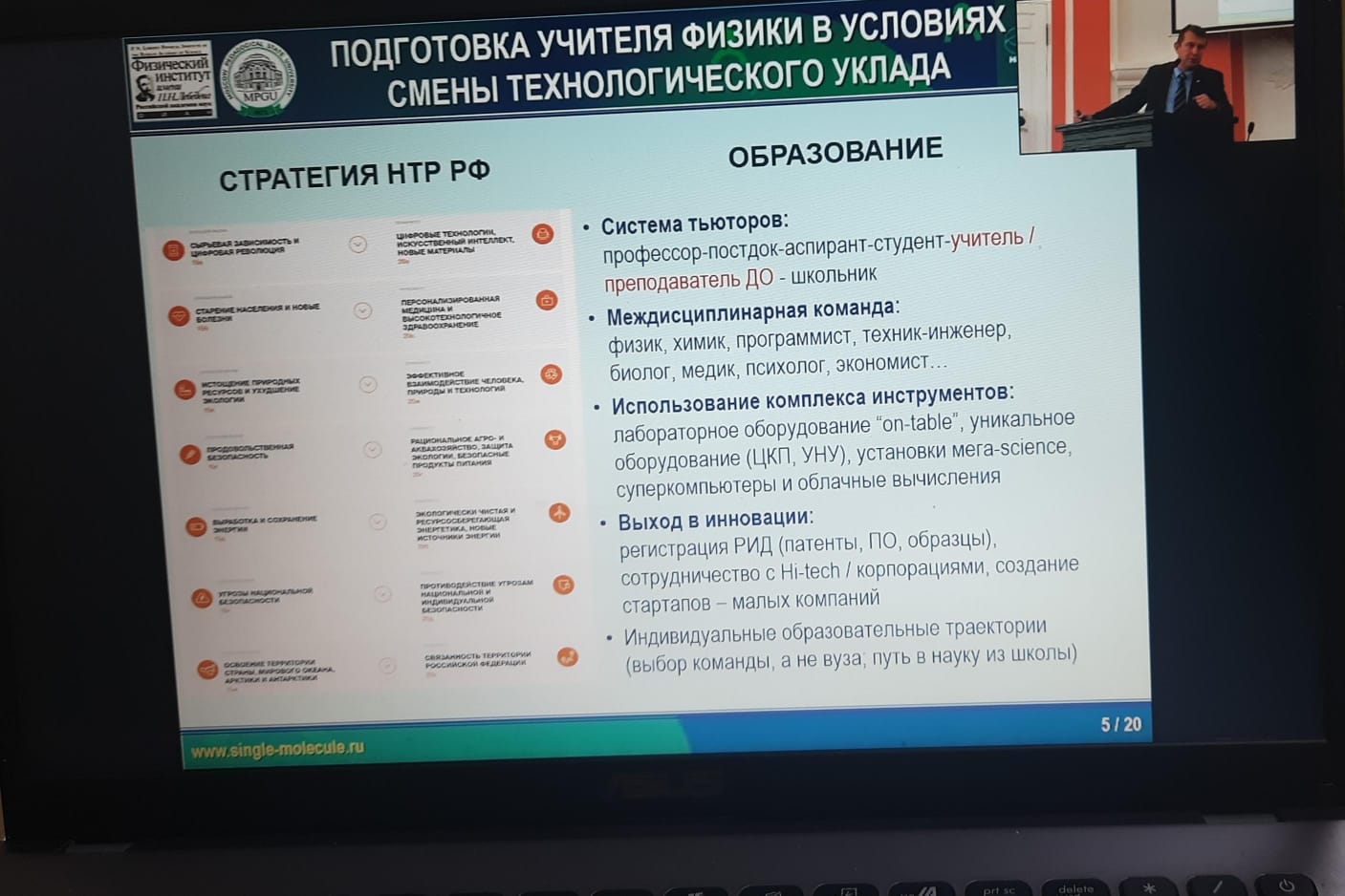 27 февраля преподаватели кафедры физики и нанотехнологий приняли дистанционное участие в  очередном заседании Методологического семинара МПГУ, посвященном вопросам организации фундаментальной и прикладной науки в педагогическом вузе на примере физических лабораторий и учебно-научных центров МПГУ.