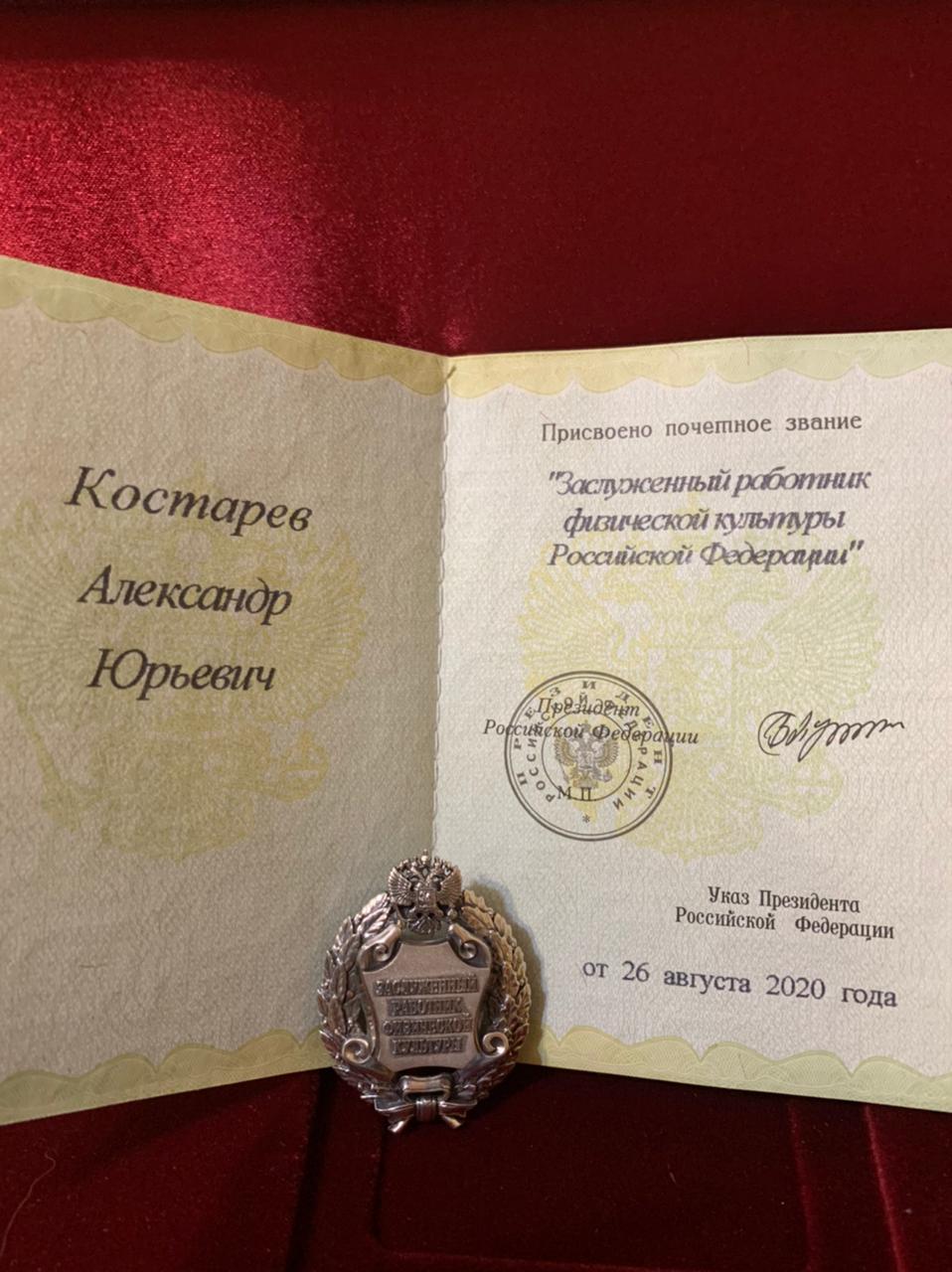 А.Ю. Костарев награжден почетным званием «Заслуженный работник физической культуры РФ»