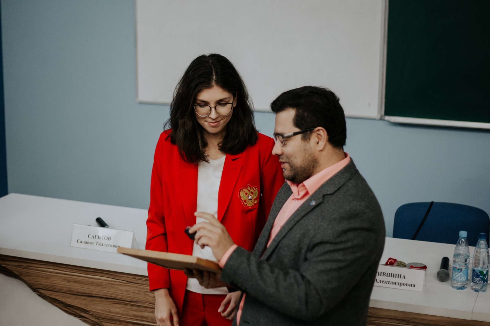 - Вы большие молодцы. Вы победили многое, сделали и делаете невозможное. Есть предел человеческих возможностей, а вы где-то за этим пределом. Мы счастливы, что наш университет имеет к этому отношение, прекрасно понимая, что это ваша заслуга и ваших родителей и тренеров, которые многие годы с вами работали. И если чуть-чуть есть доля университета в вашей победы, мы очень рады, что смогли помочь. Мы очень благодарны вам за ваш характер, ваше отношение, за то, что вы поддерживаете связь с университетом. Это важно для ребят, которые учатся у нас, увлекаются спортом. Очень приятно поздравить вас сегодня. И выразить благодарность вашим родителям и тренерам, которые помогли вам стать чемпионами.