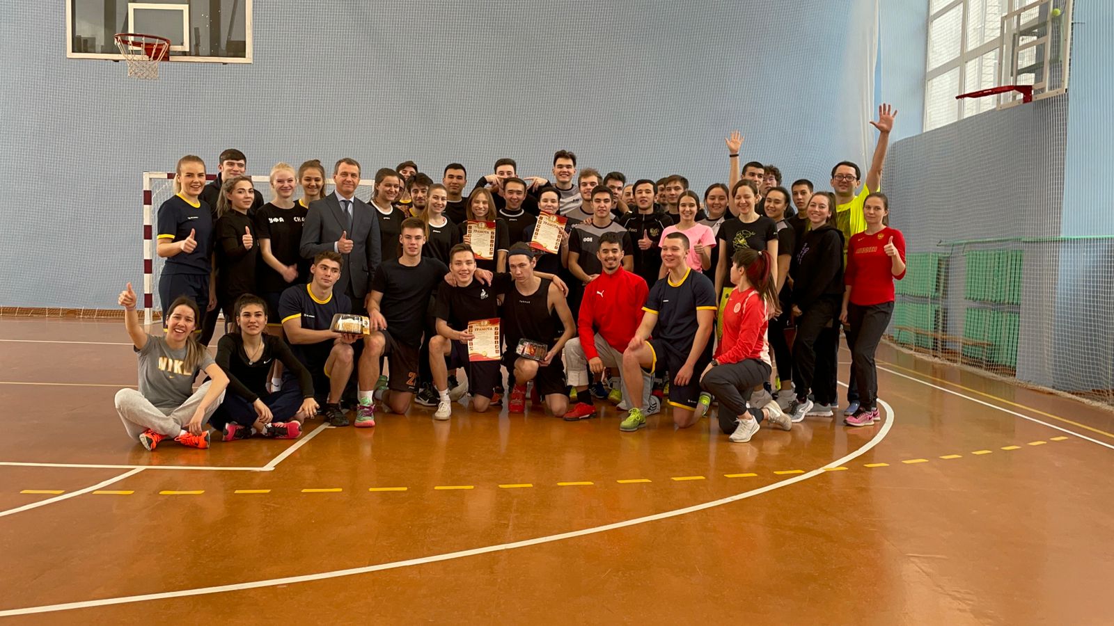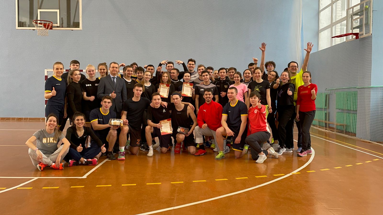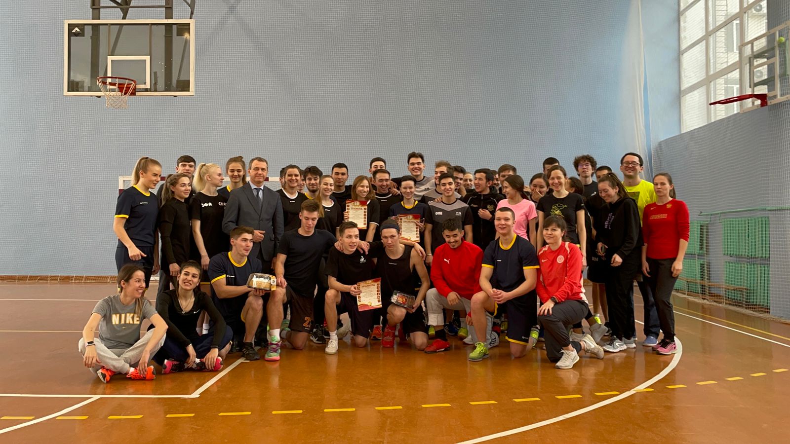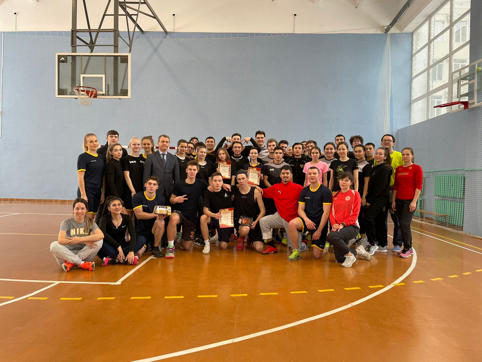 В преддверии праздников на базе ИФК состоялось физкультурно-спортивное мероприятие с участием студентов и преподавателей. Участники соревновались в различных командных видах спорта, победители среди студентов получали возможность бросить вызов сборной преподавателей, которые побеждали хитростью и опытом. Все получили хорошее настроение, а победители - сладкие призы и грамоты. Поздравляем всех участников и спасибо организаторам. Нам понравилось!
