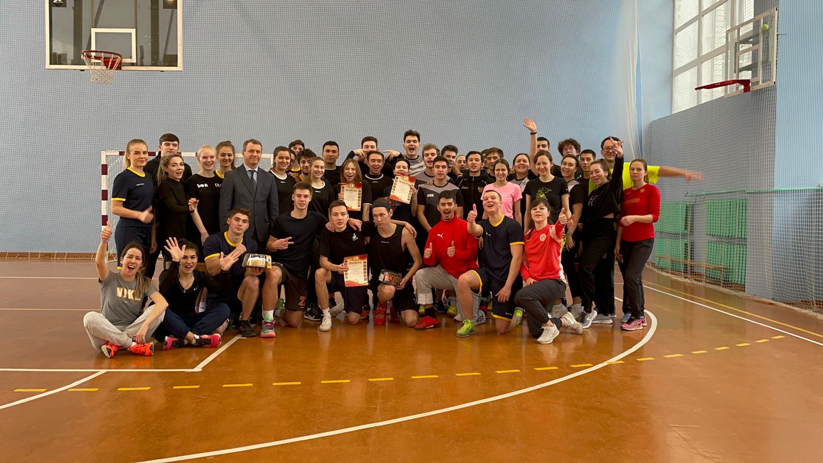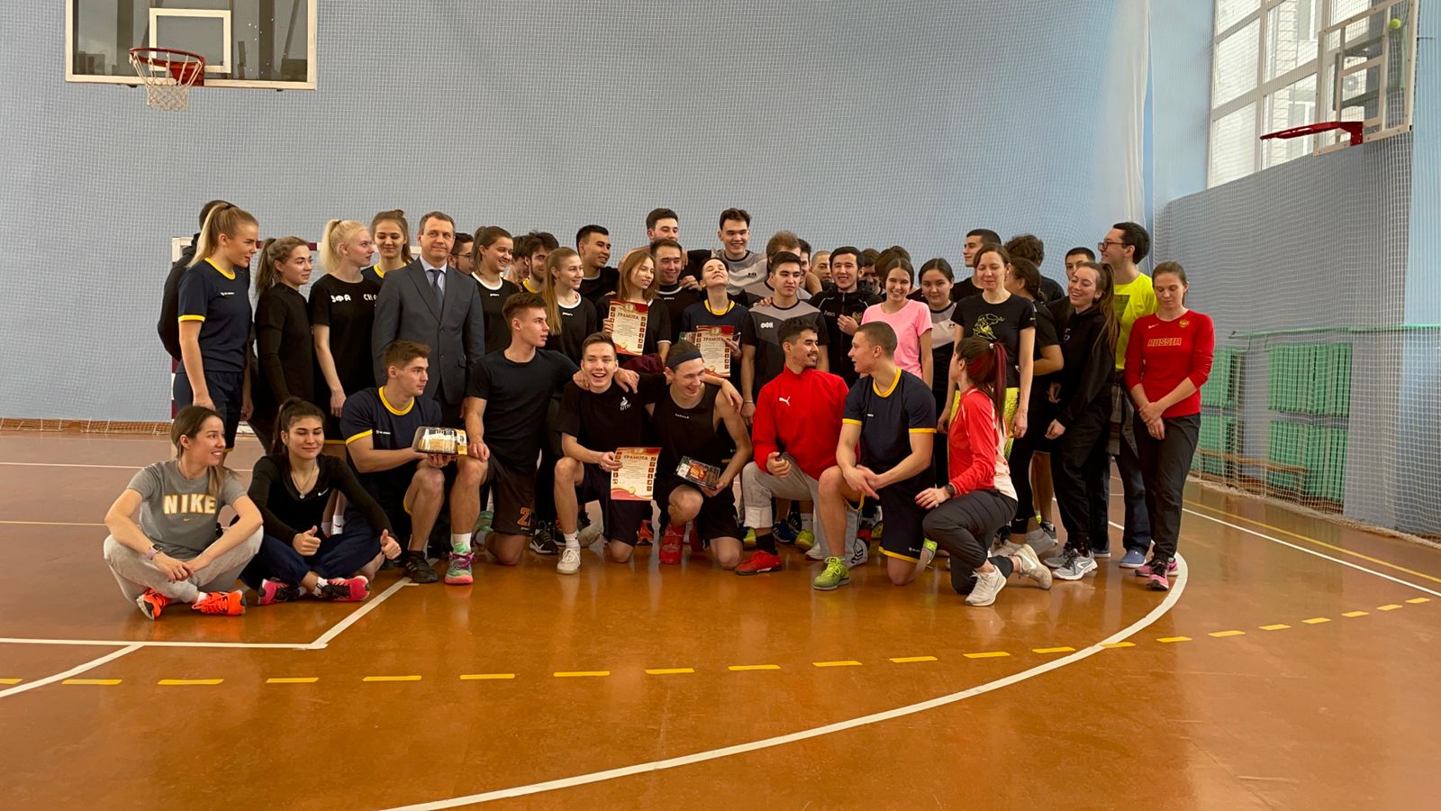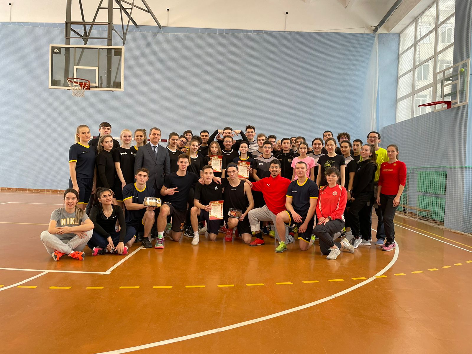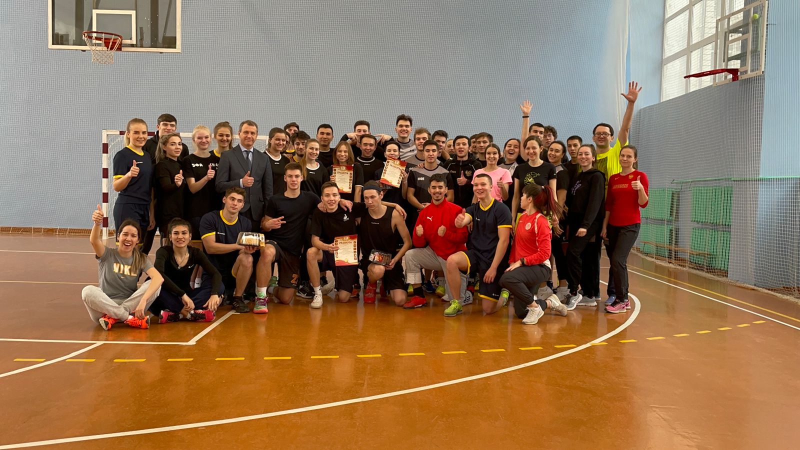 В преддверии праздников на базе ИФК состоялось физкультурно-спортивное мероприятие с участием студентов и преподавателей. Участники соревновались в различных командных видах спорта, победители среди студентов получали возможность бросить вызов сборной преподавателей, которые побеждали хитростью и опытом. Все получили хорошее настроение, а победители - сладкие призы и грамоты. Поздравляем всех участников и спасибо организаторам. Нам понравилось!