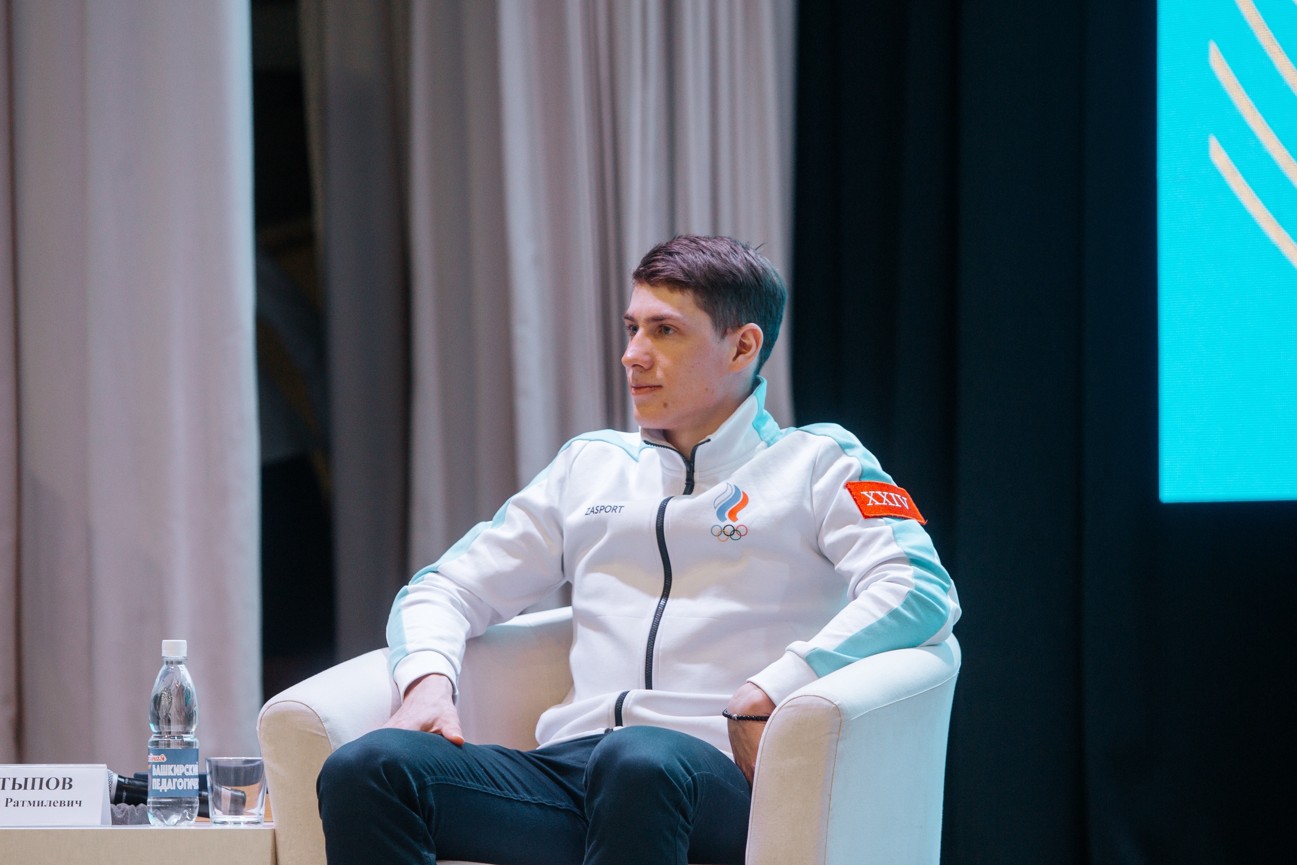 В концертном зале университета студенты вуза и колледжа БГПУ им. М. Акмуллы смогли пообщаться с биатлонистами и их тренером, задать интересующие вопросы. Модератором выступил хоккейный комментатор, председатель Башкирского республиканского отделения Федерации компьютерного спорта России, телерадиоведущий Азамат Муратов.