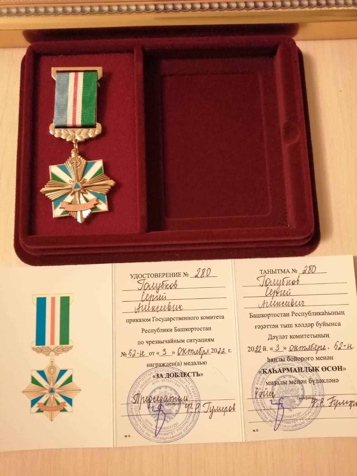 На мероприятии, посвященном 90-летию гражданской обороны, Голубков Сергей Алексеевич, полковник запаса, ветеран ГУ МЧС России по РБ был награжден медалью "за доблесть" и почетной грамотой за многолетнюю добросовестную службу, большой личный вклад в совершенствовании методов подготовки населения Республики Башкортостан в области гражданской обороны и защиты территорий от чрезвычайных ситуаций природного и техногенного характера, активную общественную деятельность по развитию ветеранского движения