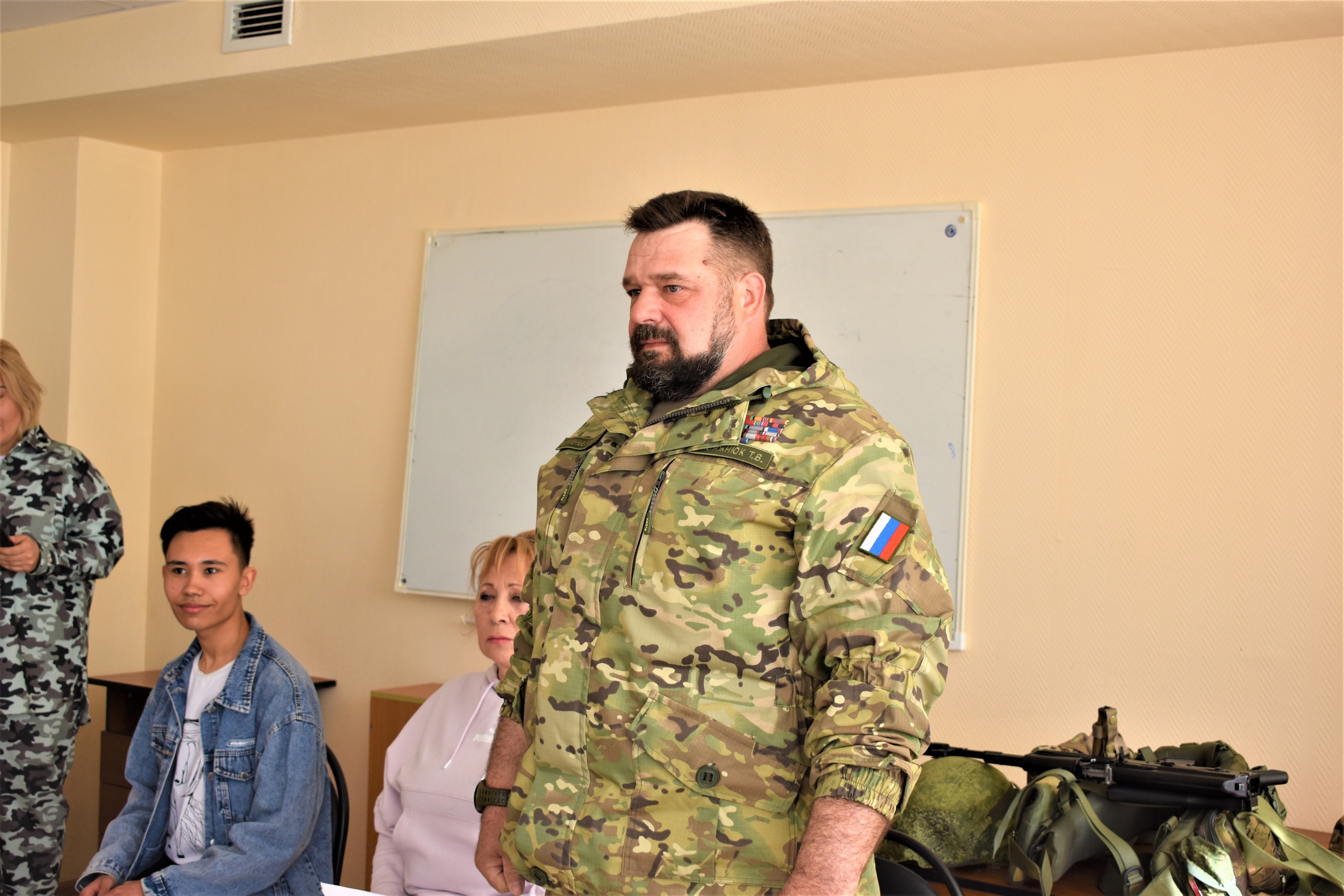В формате открытого марафона прошла беседа с участниками Специальной военной операции, добровольцами Штаба #МыВместе. Перед студентами выступили ветеран боевых действий на Северном Кавказе и в Республике Таджикистан, подполковник запаса, преподаватель-организатор ОБЖ Лицея с. Булгаково Тимофей Присяжнюк, региональный руководитель всероссийского движения «Волонтеры Победы», руководитель регионального штаба  #МЫВМЕСТЕ Тимур Ишкарин. Гости рассказали о целях и задачах СВО, отличиях СВО от боевых действий в прошлом,  а также вкладе волонтеров в помощь военнослужащим.