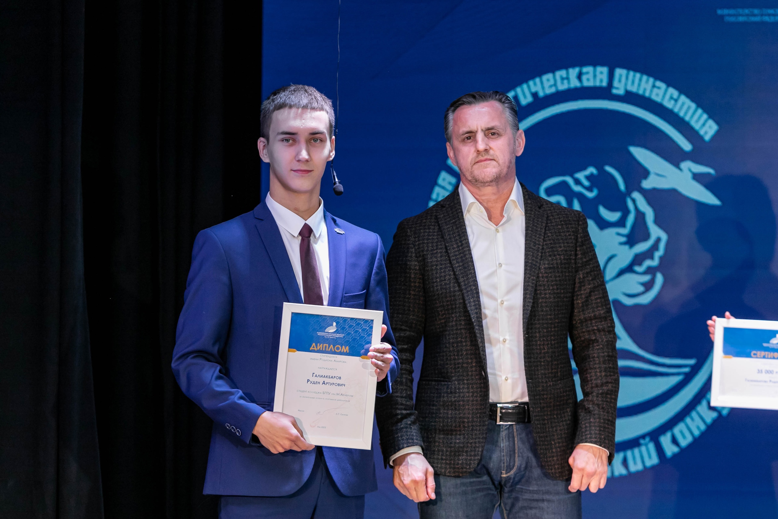 Диплом стипендиата имени Родина Амирова 2023 года получил призер международных и всероссийских соревнований, призер Евразийский игр боевых искусств, судья второй категории по карате Руден Галиакбаров.