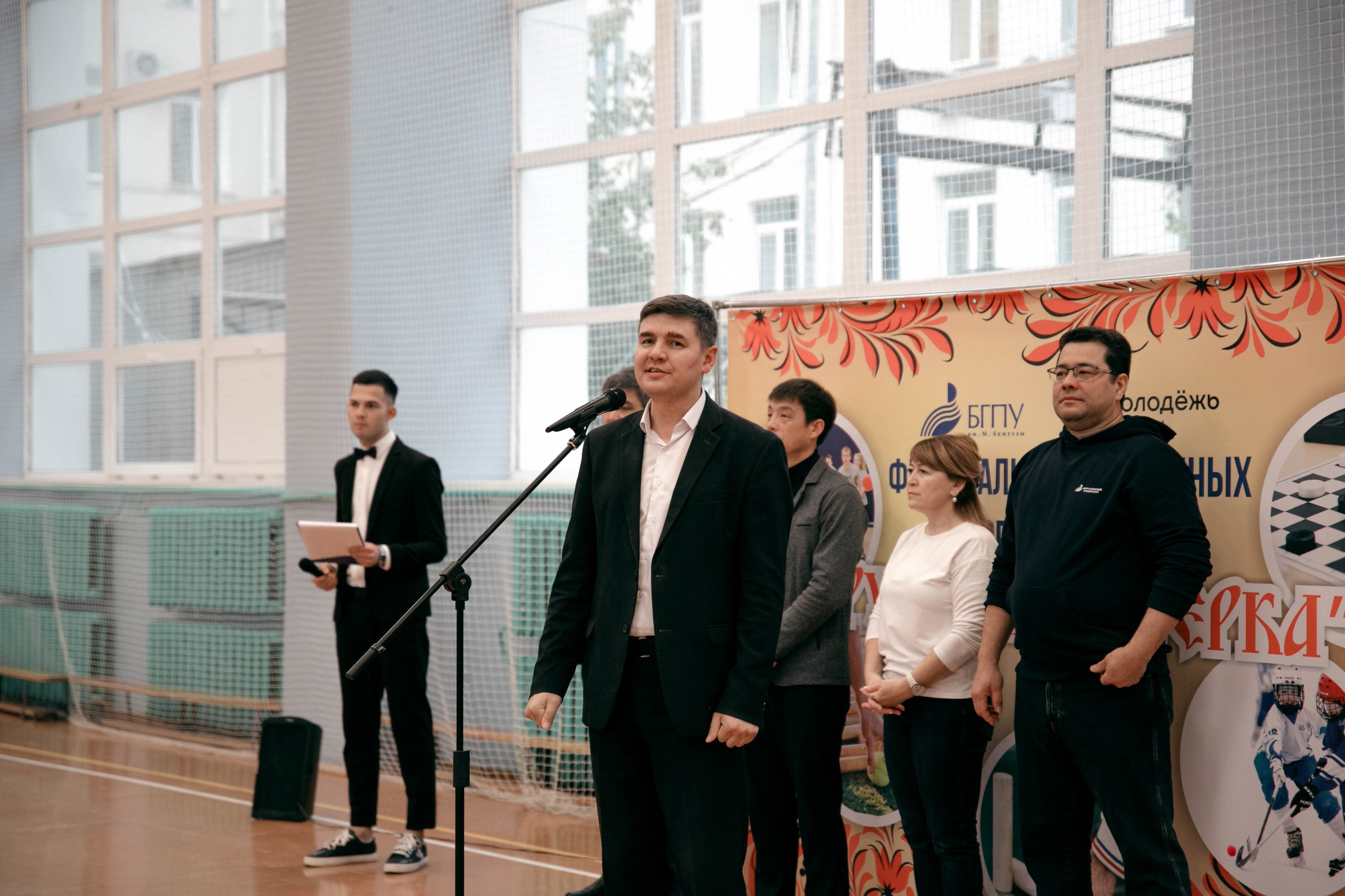 На церемонии открытия состязаний участников приветствовали первый проректор Акмуллинского университета по стратегическому развитию Алмаз Мустаев и и.о. директора института физической культуры и здоровья человека Николай Черепанов.