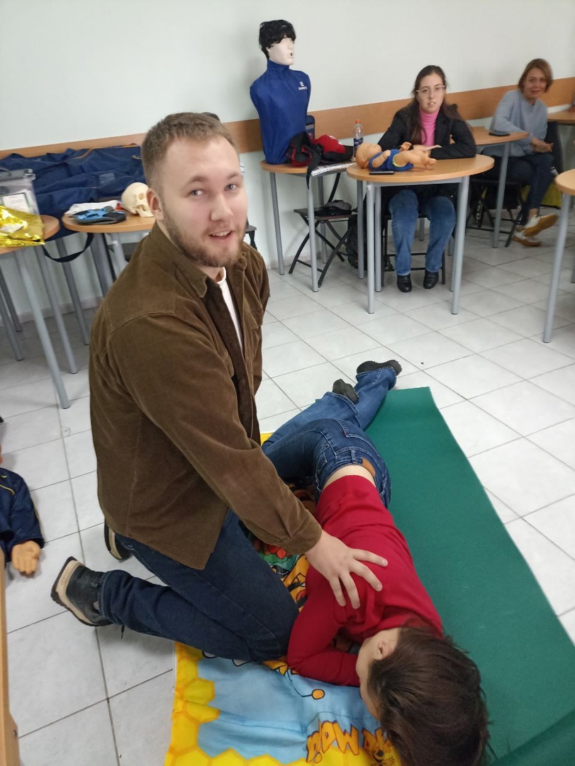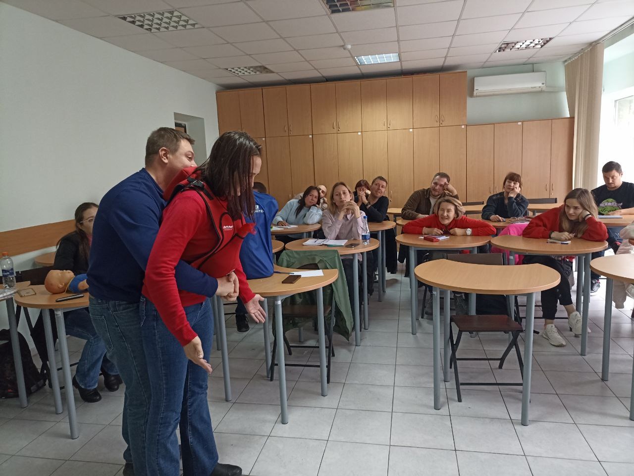 Заслуженный работник физической культуры РБ, к.п.н., доцент Щемелинин В.И. и к.м.н., доцент кафедры охраны здоровья и безопасности жизнедеятельности, инструктор по первой помощи Мануйлова Г.Р.