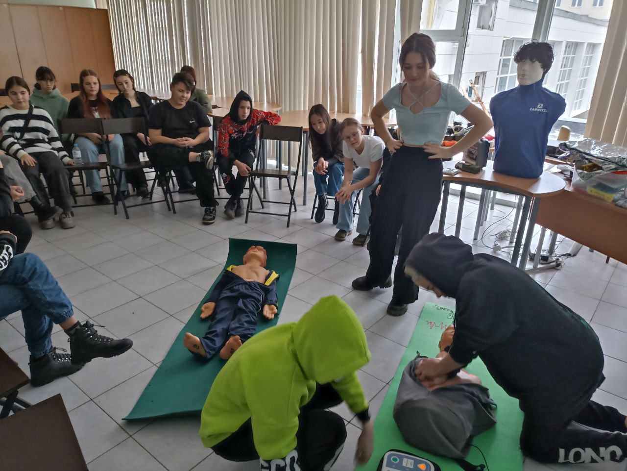 Подростки познакомились с Универсальным алгоритмом оказания первой помощи, на тренажерах отработали навыки оказания первой помощи при отсутствие сознания, остановке дыхания и кровообращения, попадании инородных тел в дыхательные пути.