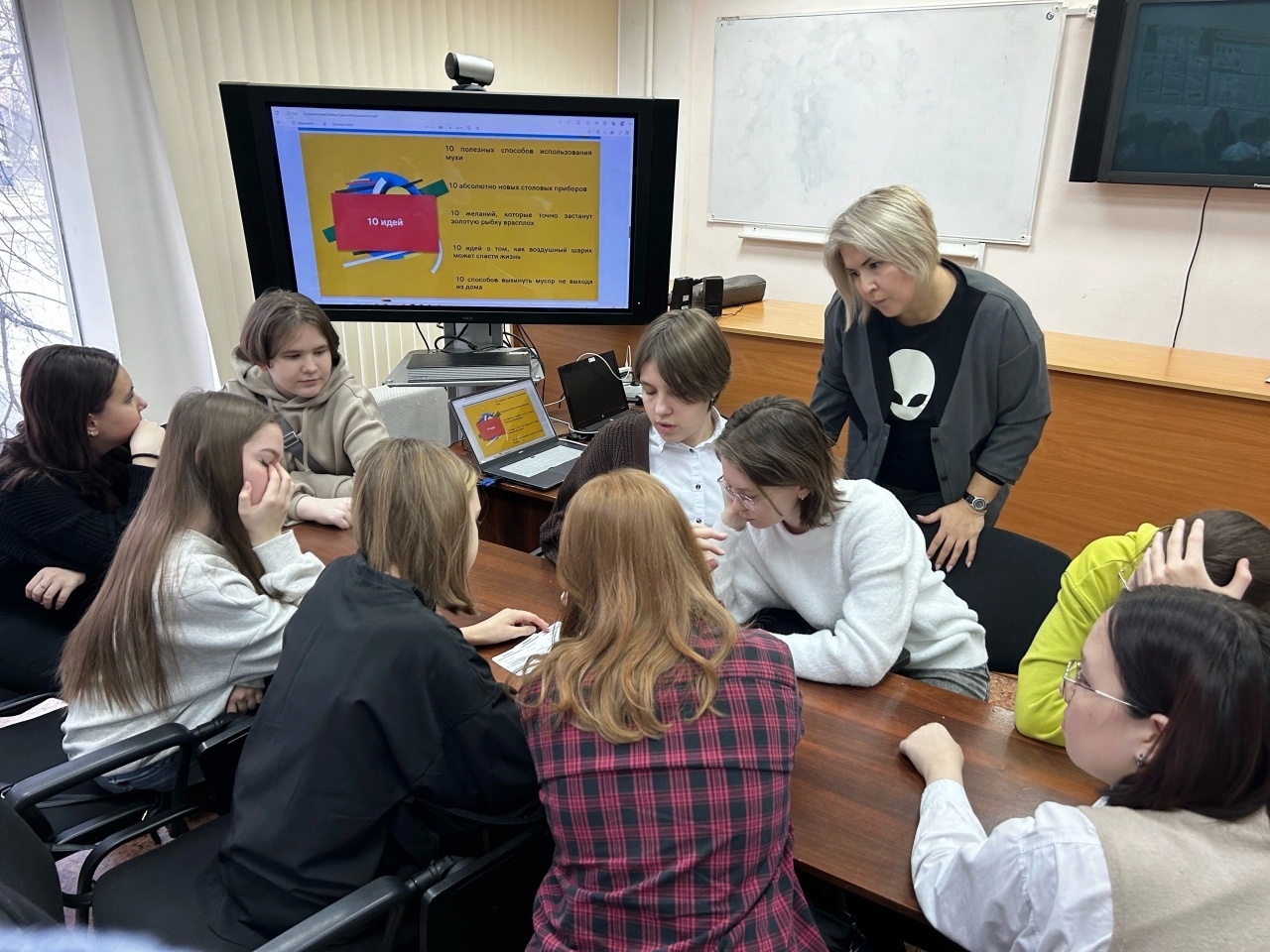 Школьники внимательно слушали лектора -к.с.н., доцента кафедры Элину Сафину,
