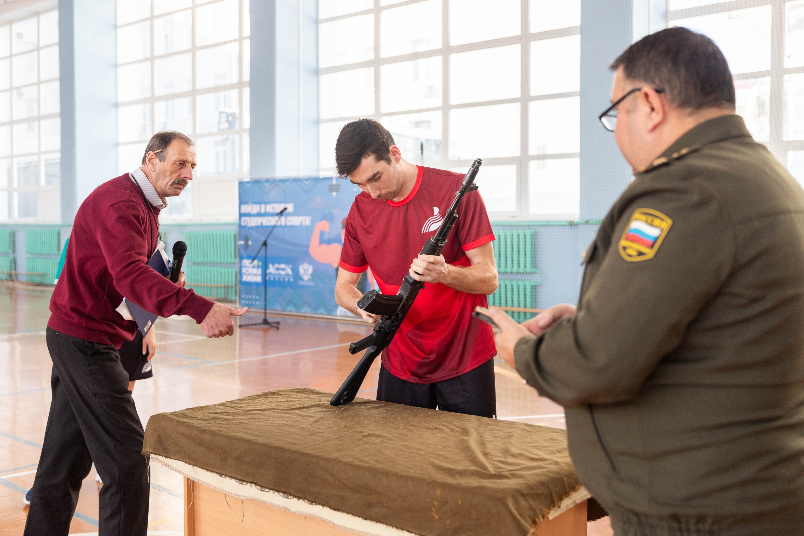 Студенты представляли название, девиз и эмблему своей команды, соревновались в дартсе, капитаны команд боролись за звание лучшего в знании воинских званий. Завершающим этапом стала сборка и разборка автомата Калашникова.