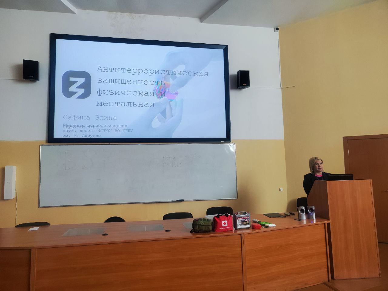 В рамках мероприятия ребята посмотрели фильм, подготовленный Российским обществом "Знание" - "Беслан: три дня навсегда", который оставил глубокий след в сердцах каждого. Доценты кафедры Элина Сафина и Гульшат Мануйлова  лектора РОО "Знание" провели со студентами беседу по итогам просмотра фильма.