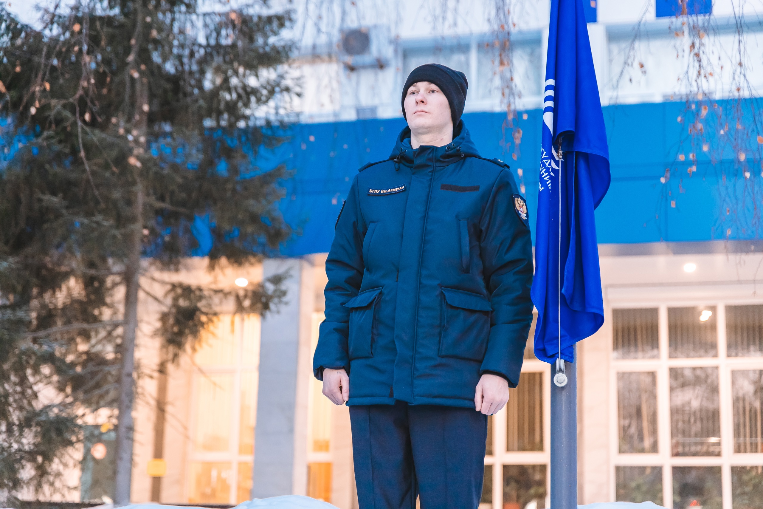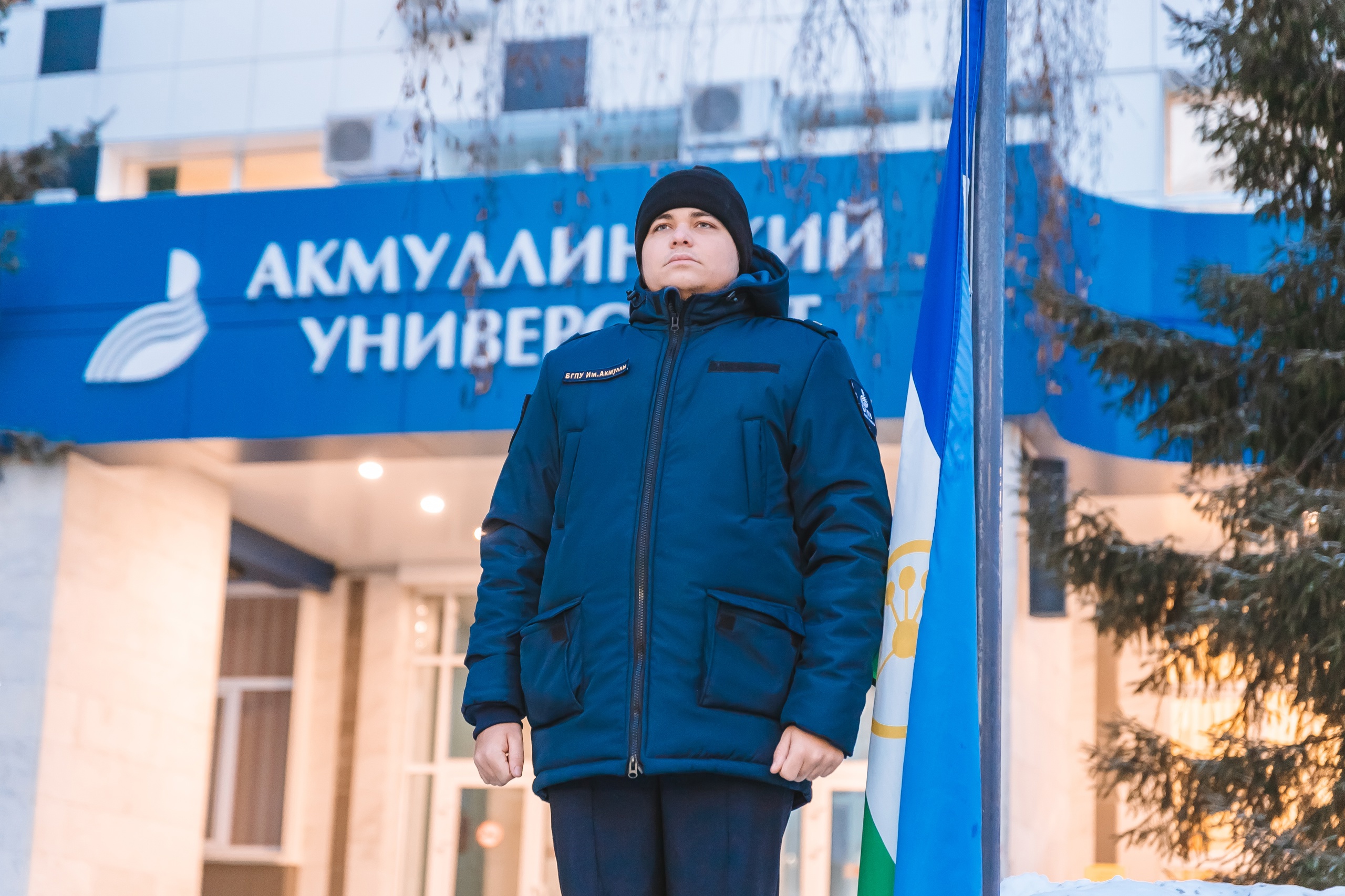 24 февраля в Акмуллинском университете состоялась еженедельная торжественная церемония поднятия государственных флагов Российской Федерации, Республики Башкортостан, флагов Министерства просвещения Российской Федерации и Акмуллинского университета. В ней приняли участие студенты и преподаватели Института физической культуры и здоровья человека, Института филологического образования и межкультурных коммуникаций.