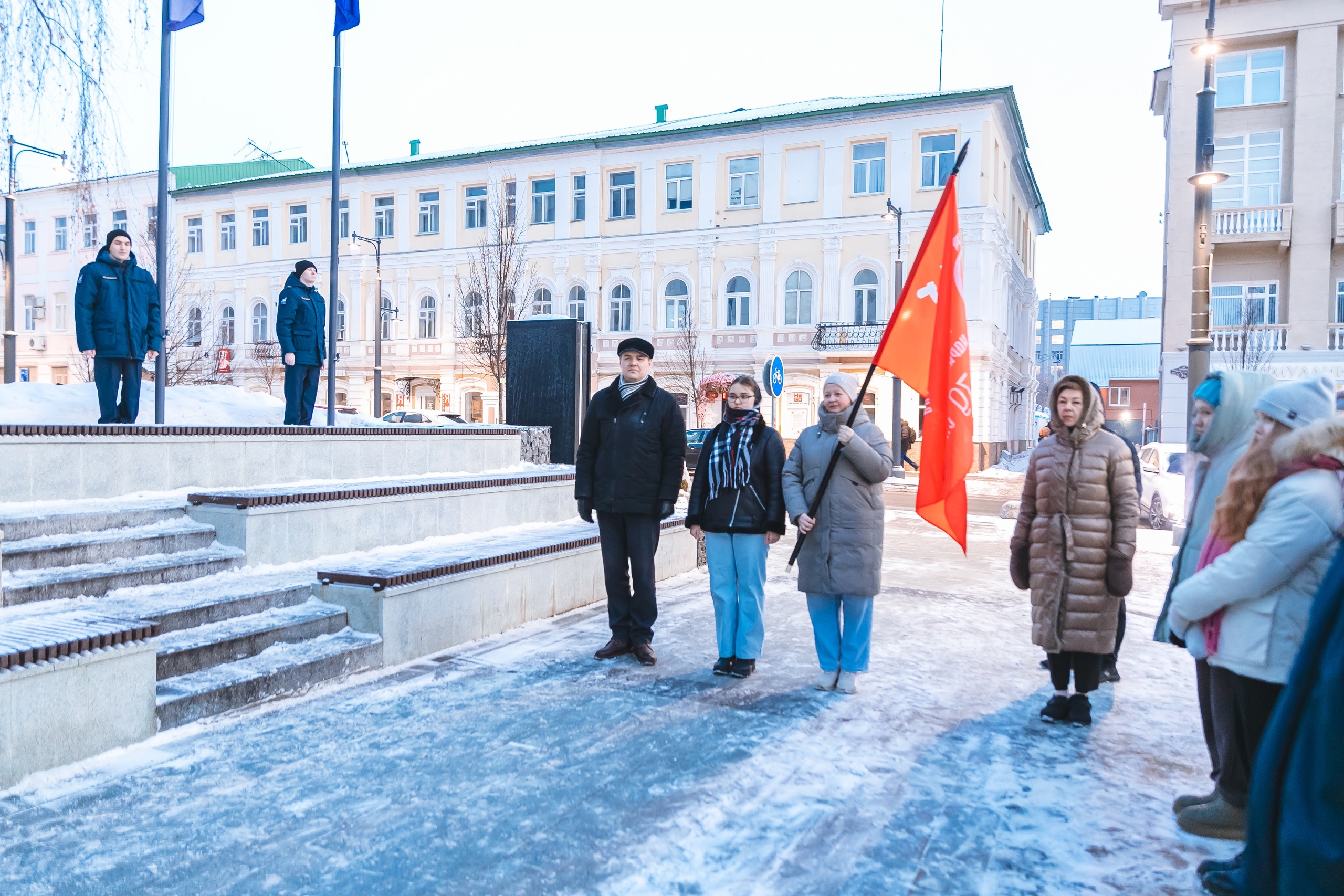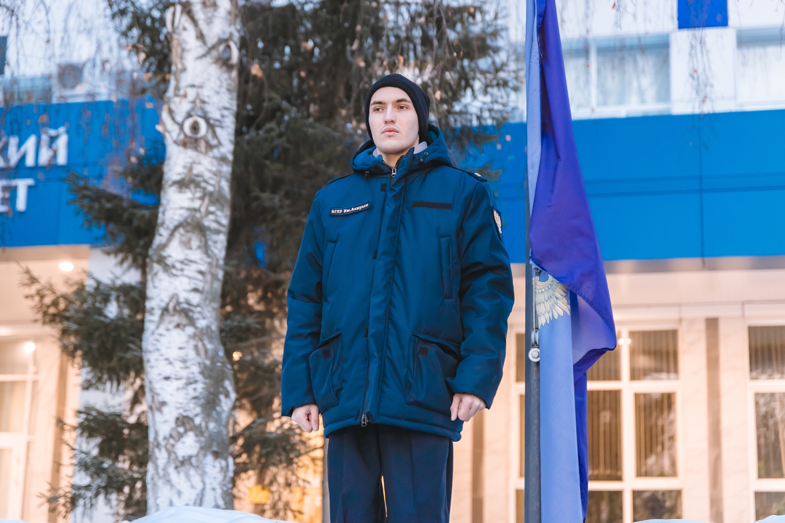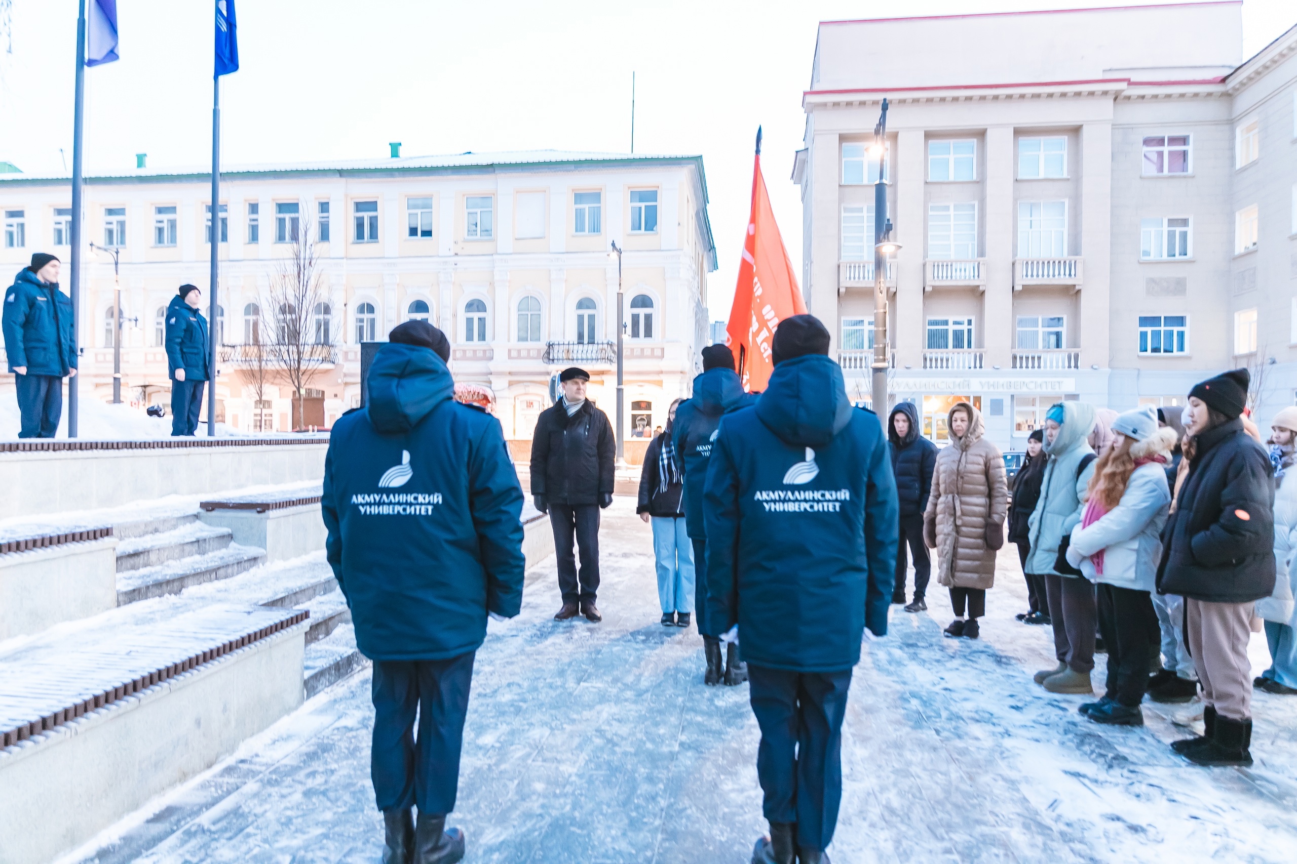 Участники студенческого клуба «Яугир-Воин» подняли флаги перед Акмуллинским университетом