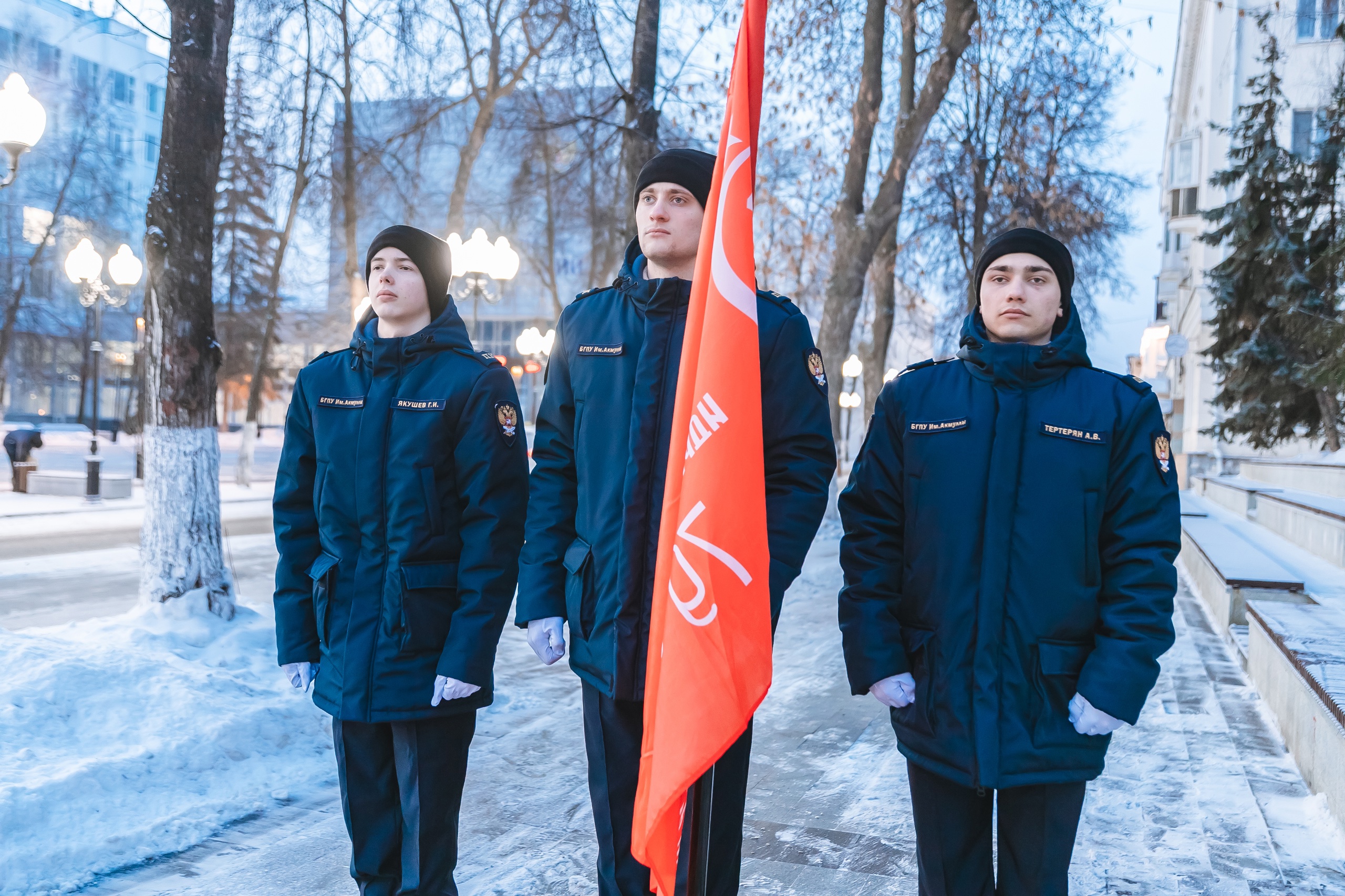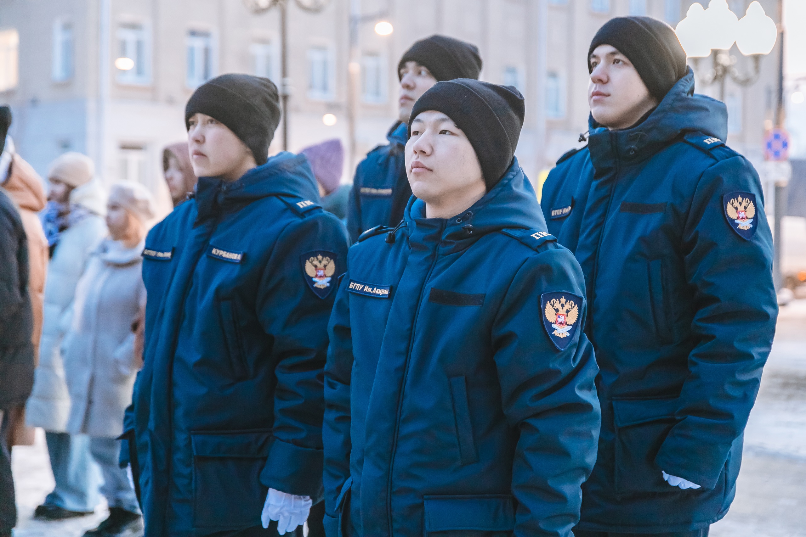 Почетное право поднять флаги на площади перед университетом получили ребята из студенческого клуба военно-спортивной подготовки и патриотического воспитания «Яугир-Воин»: