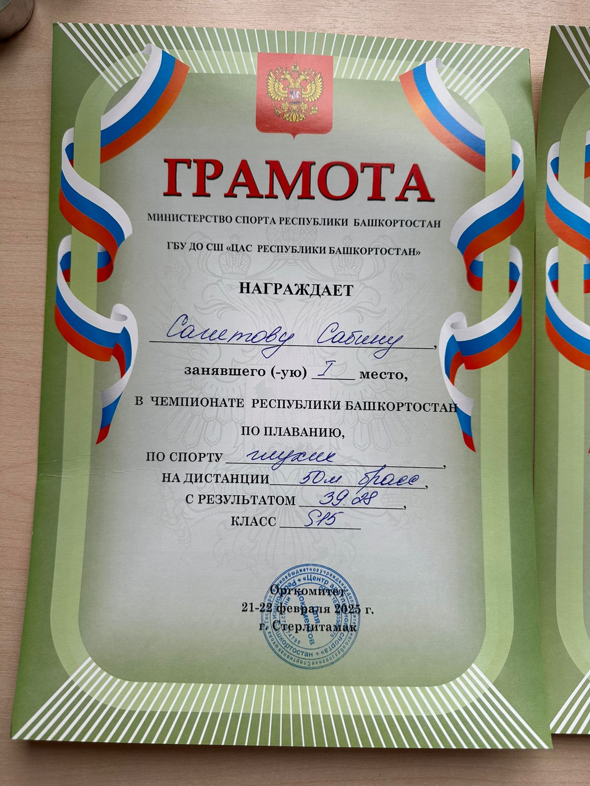Личные дистанции 50м брасс 1 место, 50 вс 2 место, 50 батт 1 мест.