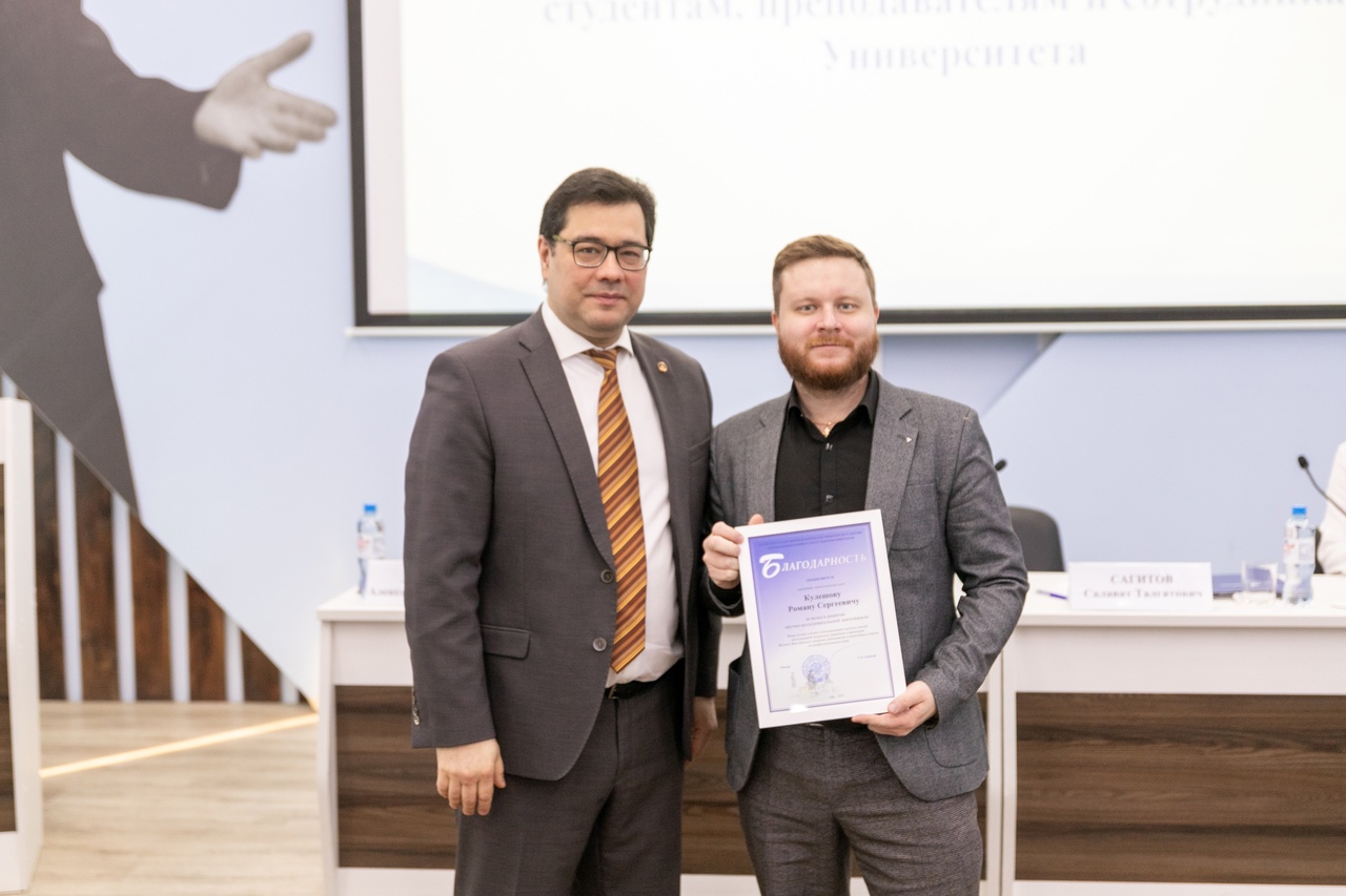 Роман Сергеевич Кулешов – кандидат педагогических наук, доцент кафедры теории и методики физической культуры и спорта, заместитель директора Института физической культуры и здоровья человека БГПУ им. Акмуллы по научной работе, председатель совета молодых ученых Акмуллинского университета, заместитель председателя клуба молодых ученых Евразийского НОЦ. Победитель в номинации "Гуманитарные науки" конкурса на лучшую научную работу молодых ученых вузов и научных учреждений Республики Башкортостан 2024 года.