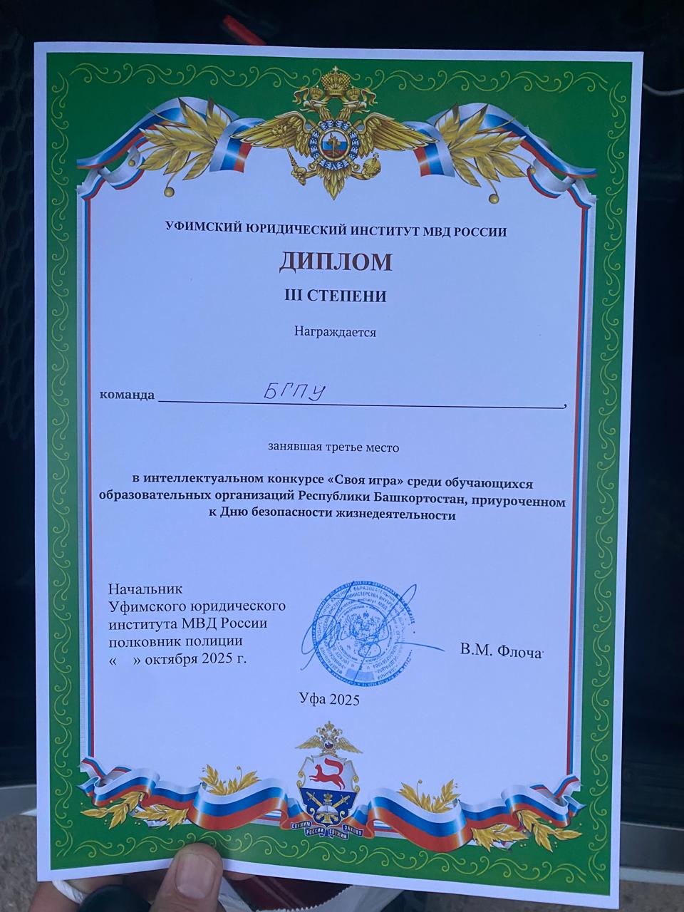 7 октября первокурсники Акмуллинского университета  приняли участие и стали призерами увлекательного интеллектуального конкурса «Своя игра». Конкурс организован Уфимским юридическим институтом Министерства внутренних дел Российской Федерации. Мероприятие прошло в рамках празднования Дня гражданской обороны Российской Федерации и собрало команды вузов Уфы.