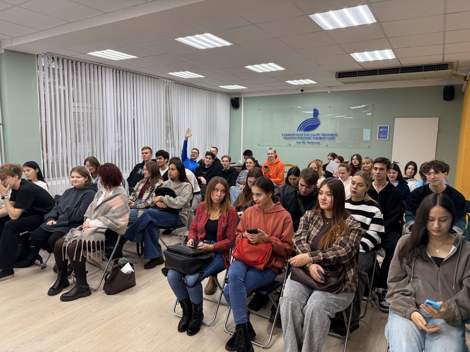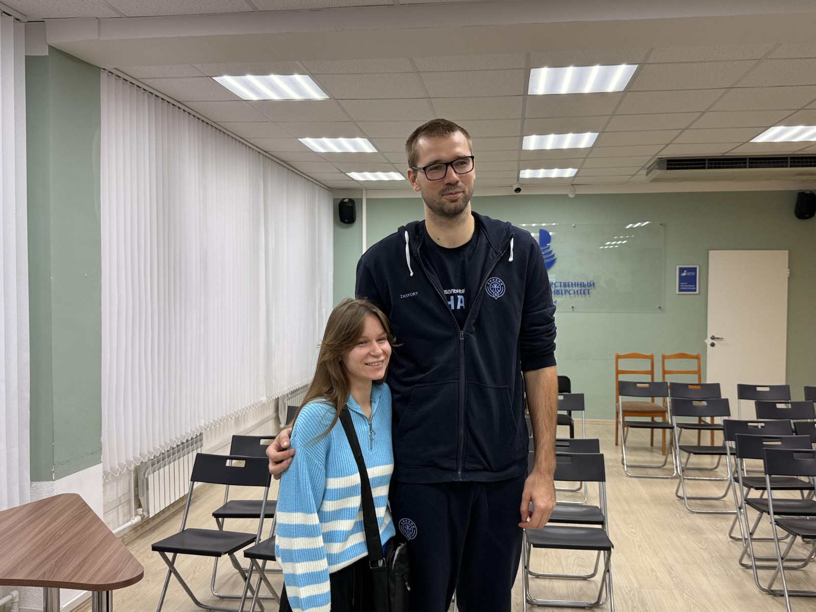 Студенты Акмуллинского с большим интересом общались с игроками на разные темы: о начале игрового сезона, планах на предстоящее будущее, о том как Семён и Никита пришли в баскетбол и как стали профессиональными игроками, как им удаётся совмещать спорт и учебу и многом другом.