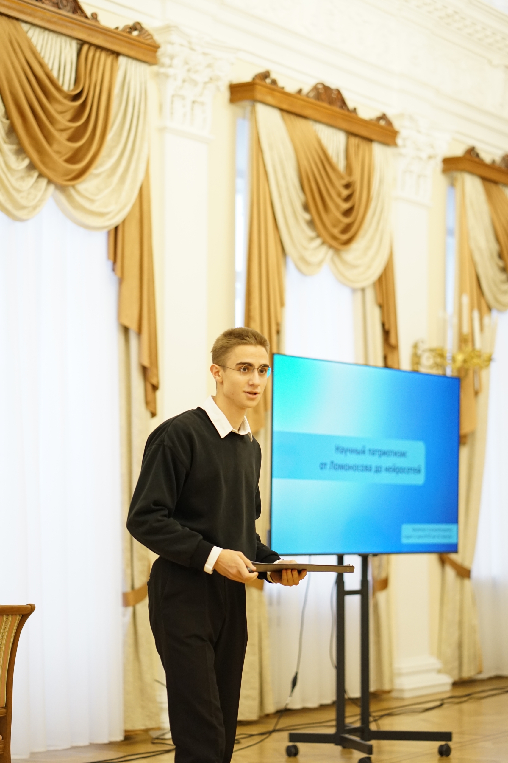• Финальном научном стендапе на тему «Научный патриотизм: от Ломоносова до нейросетей», который состоялся в торжественной атмосфере Дворца книги.