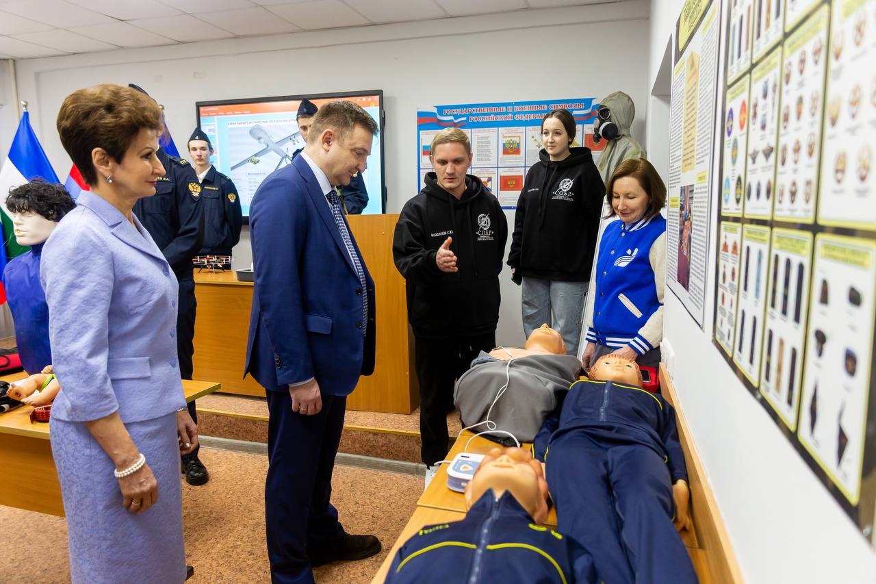 В Институте физической культуры и здоровья человека замминистра показали кабинет, где проходят лекционные и практические занятия по основам  здорового образа жизни, первой помощи и основам медицинских знаний. Здесь располагаются роботы-тренажеры «Глаша», «Гоша» и «Гаврюша» и манекены, тренажеры для освоения навыков сердечно-легочной реанимации, тактические аптечки и средства первой помощи. Ремонт в обновленных кабинетах, мебель и оборудование для них приобретены по программе модернизации системы образования, реализуемой Минпросвещения РФ в рамках федерального проекта «Педагоги и наставники» национального проекта «Молодёжь и дети».